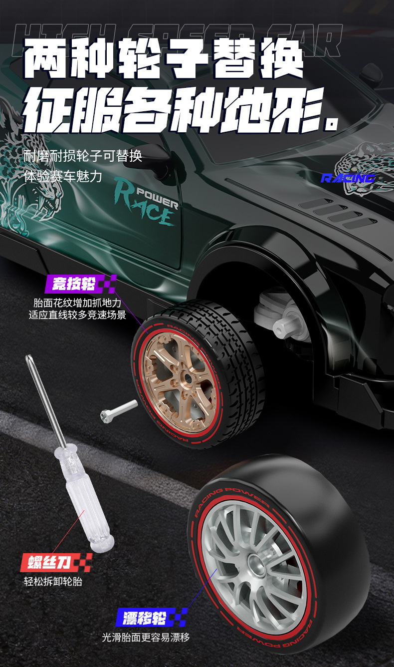 [single control]-green-spray-drift remote-control car-[1 large +1 small, 2 lithium batteries]