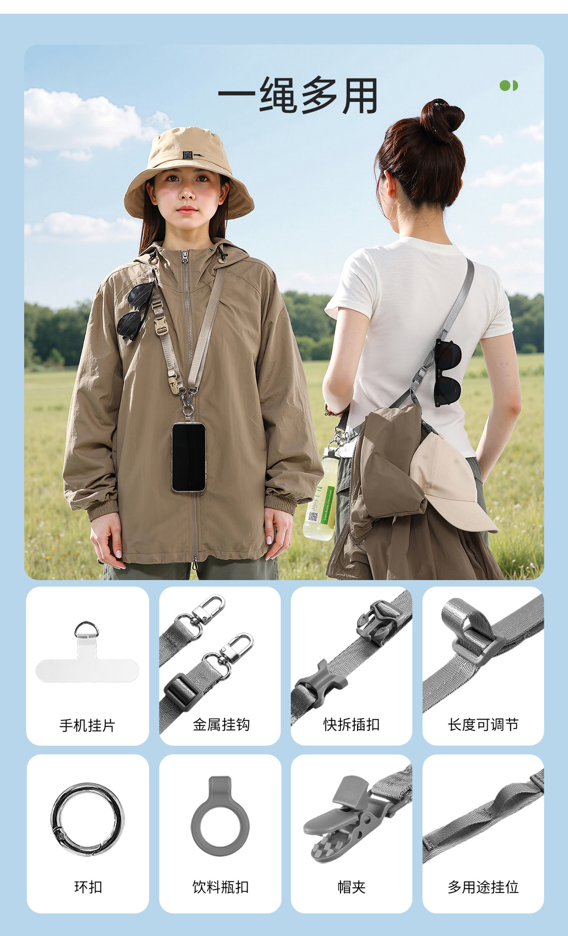 portable lanyard strap rope (gray)
