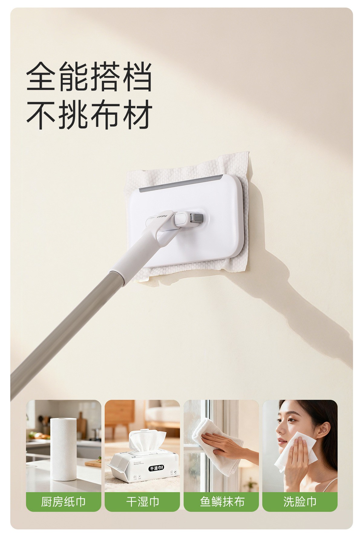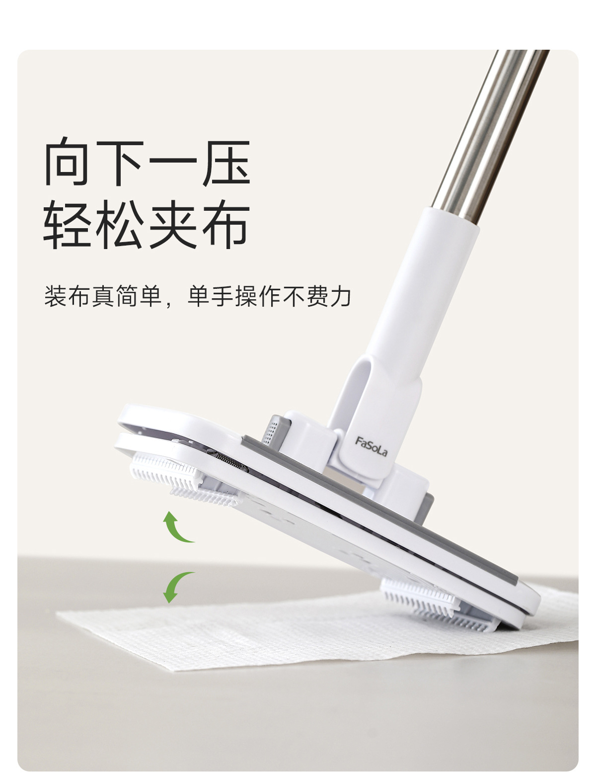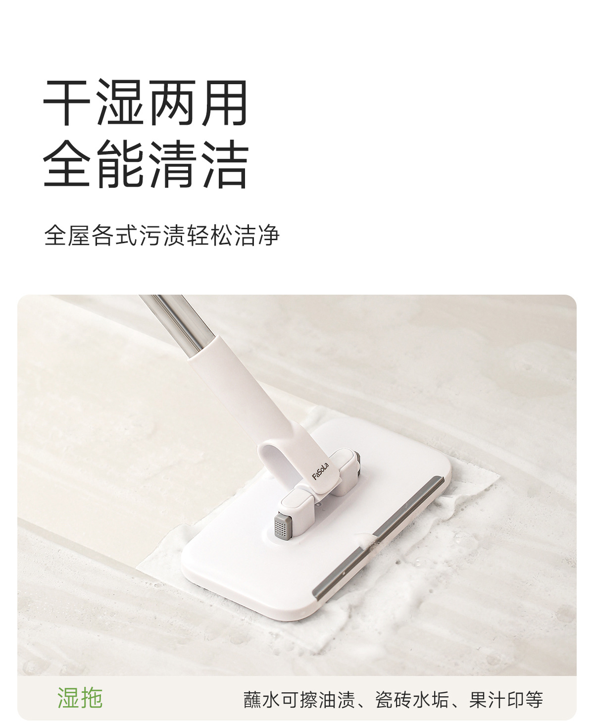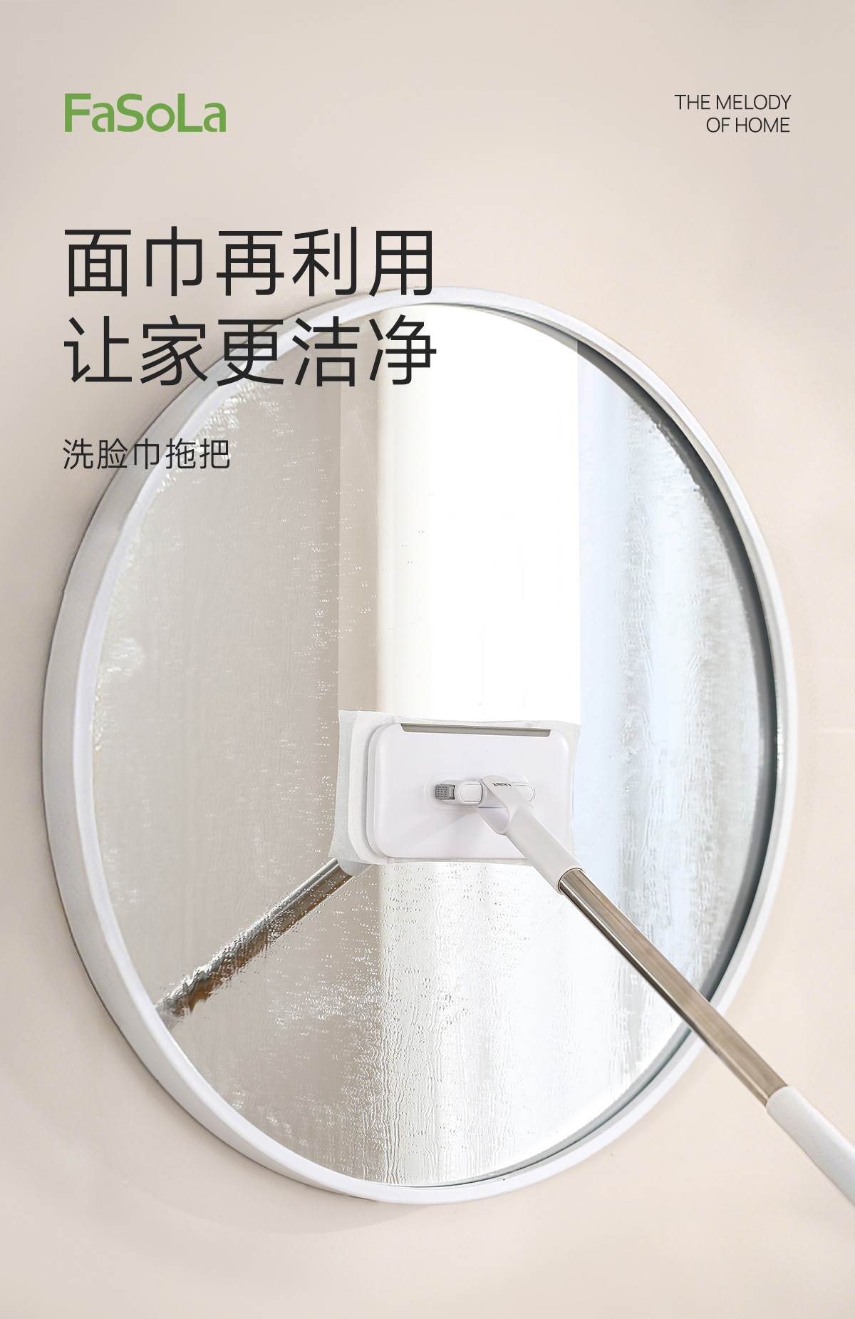fasola hand wash-free mini floor cleaner wet and dry facial towel secondary use lengthening bar face cloth mop