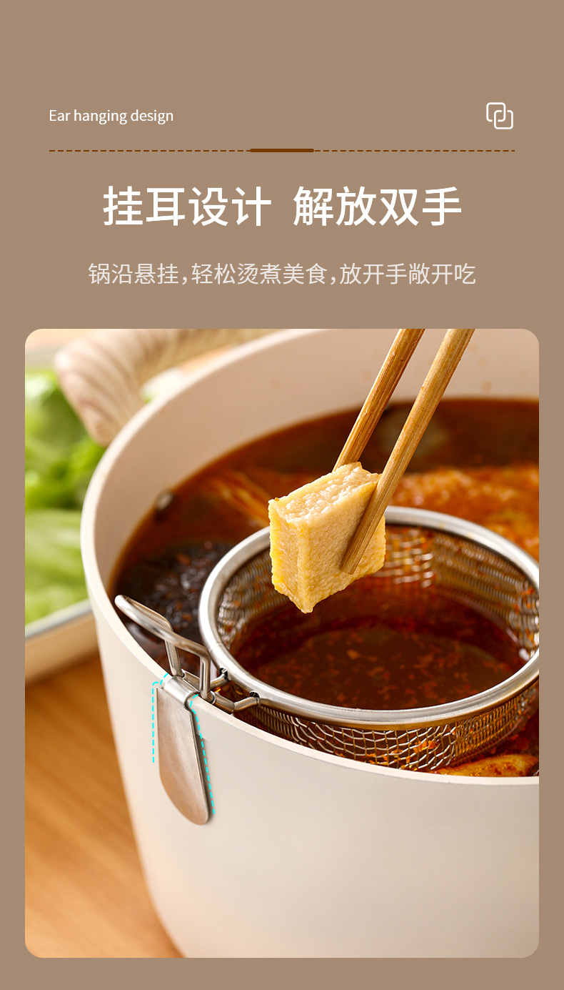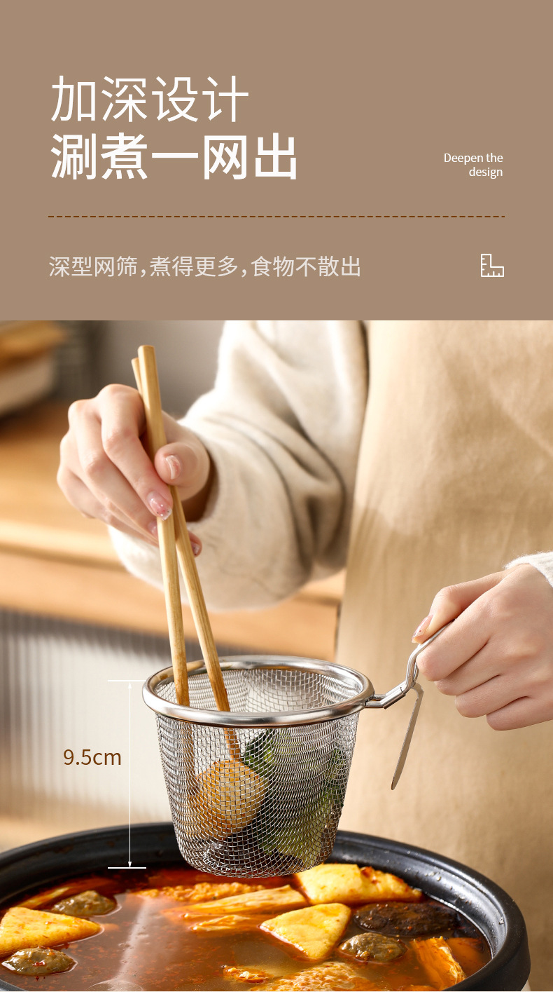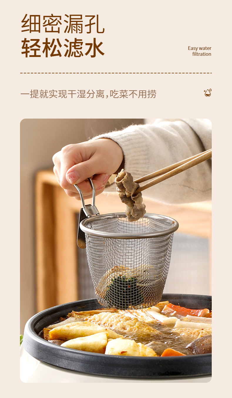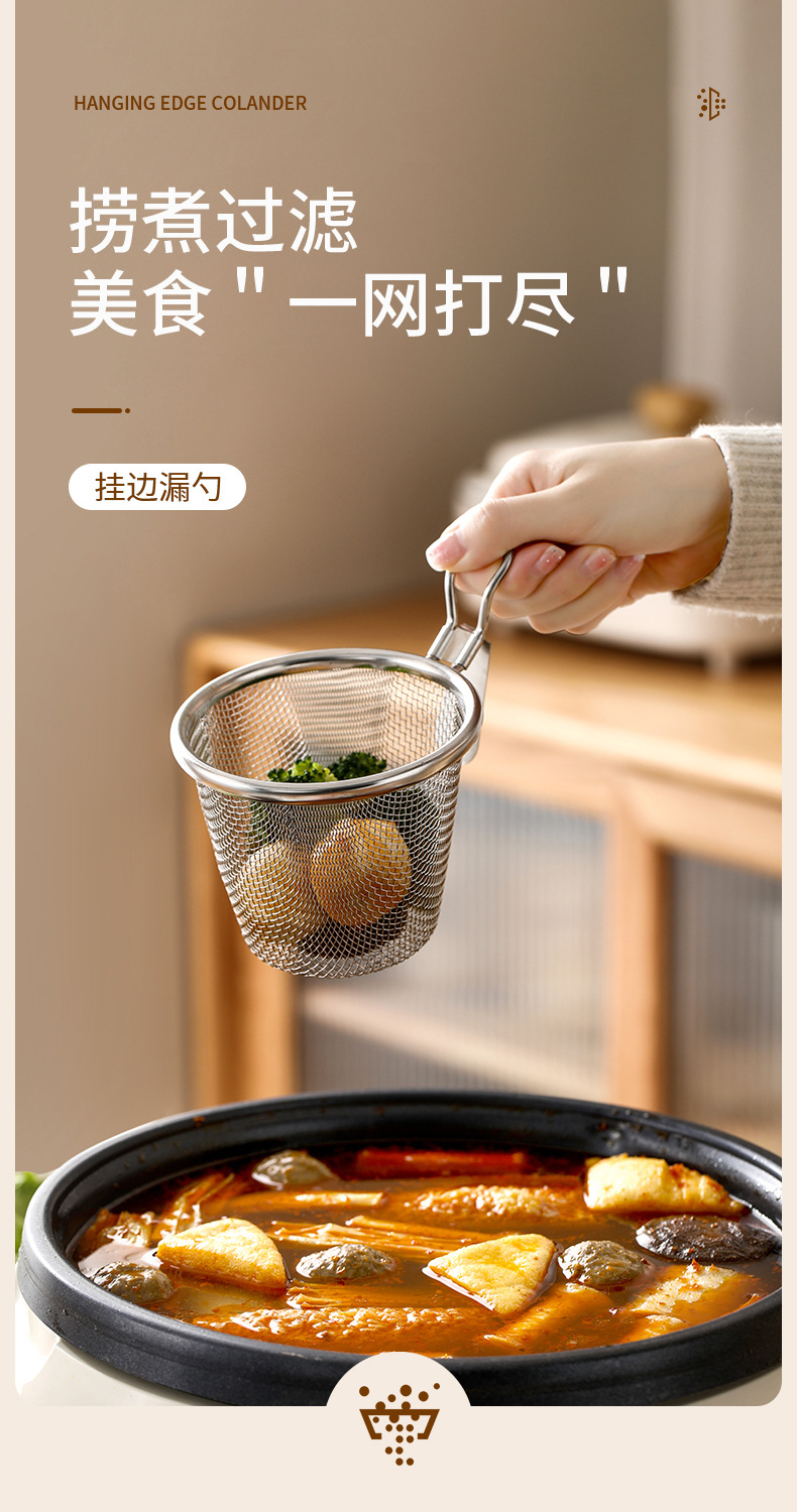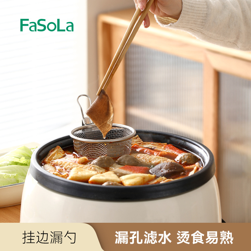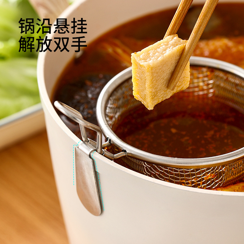 fasola stainless steel colander hot pot dedicated fine mesh draining basket kitchen frying filter mesh basket household hanging side colander