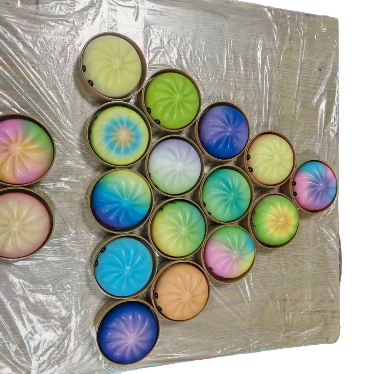 12 colorful steamed buns with steamer with end box