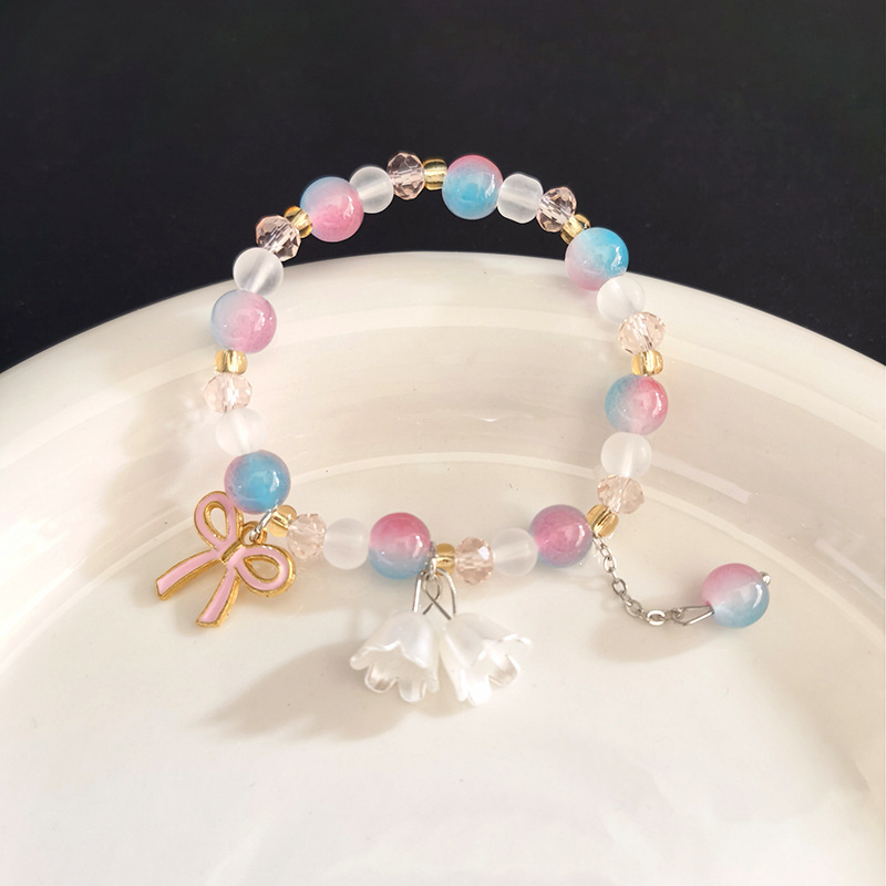 s210 white purple beads bow bracelet