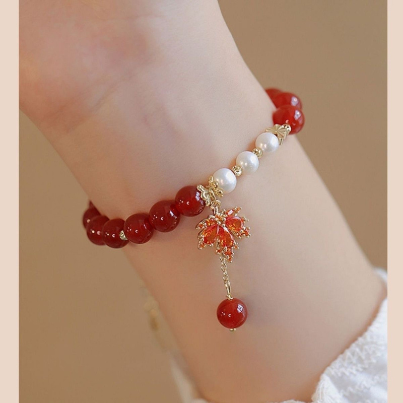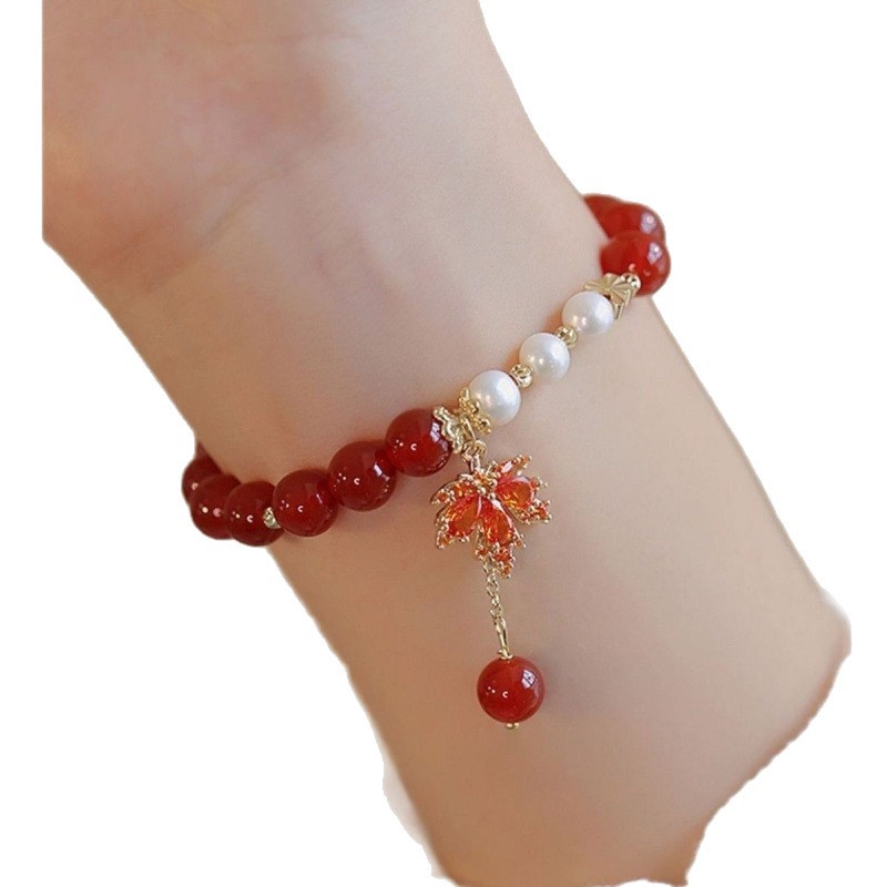s167 love-struck red bean pearl maple leaf bracelet