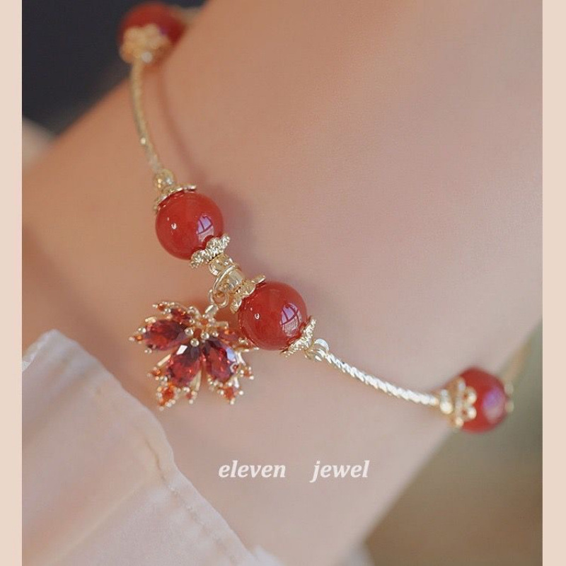 s166 red bead maple leaf bracelet