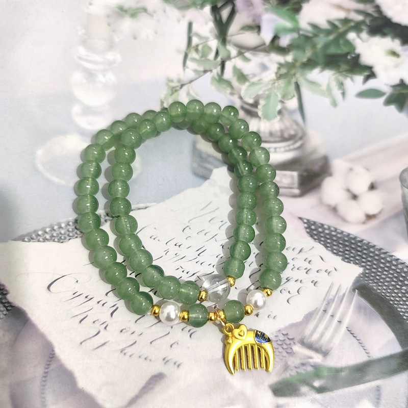 q10 double circle dongling green gold comb bracelet