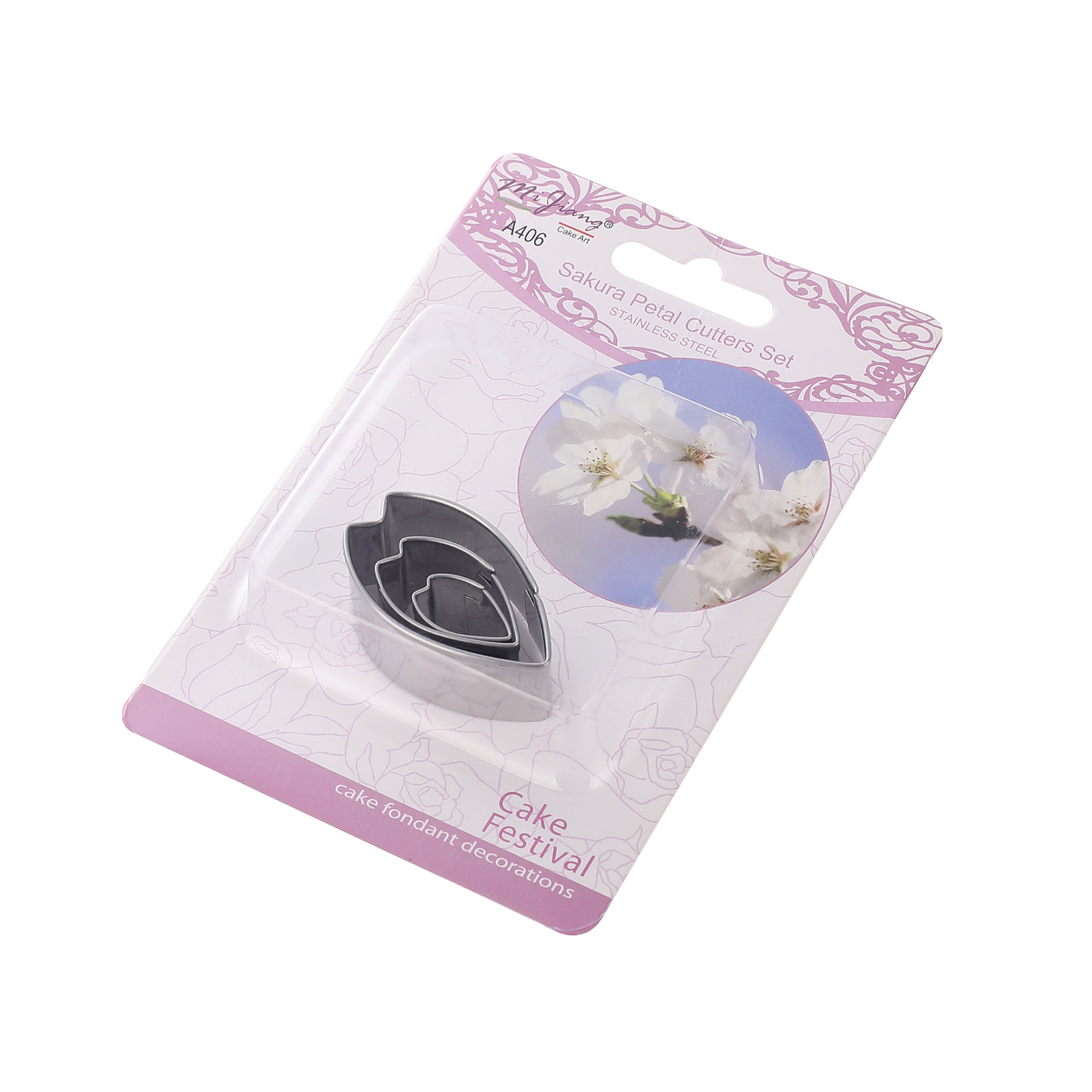 Instructions: First, place the fondant on the fondant silicone mat and roll it flat with a rolling pin. Then, cut out 2-3 identical-sized petal shapes using the 3 different designs of this petal mold. Insert a wire into the center of each petal. Place the petals on a foam mat and use the stainless steel carving set to roll the edges of the petals to create a three-dimensional effect. Next, apply the prepared food coloring to the petals and then place them on a drying mat to allow them to dry for a while. Once the petals are dry and set, arrange them from smallest to largest to create a beautiful and realistic cherry blossom.