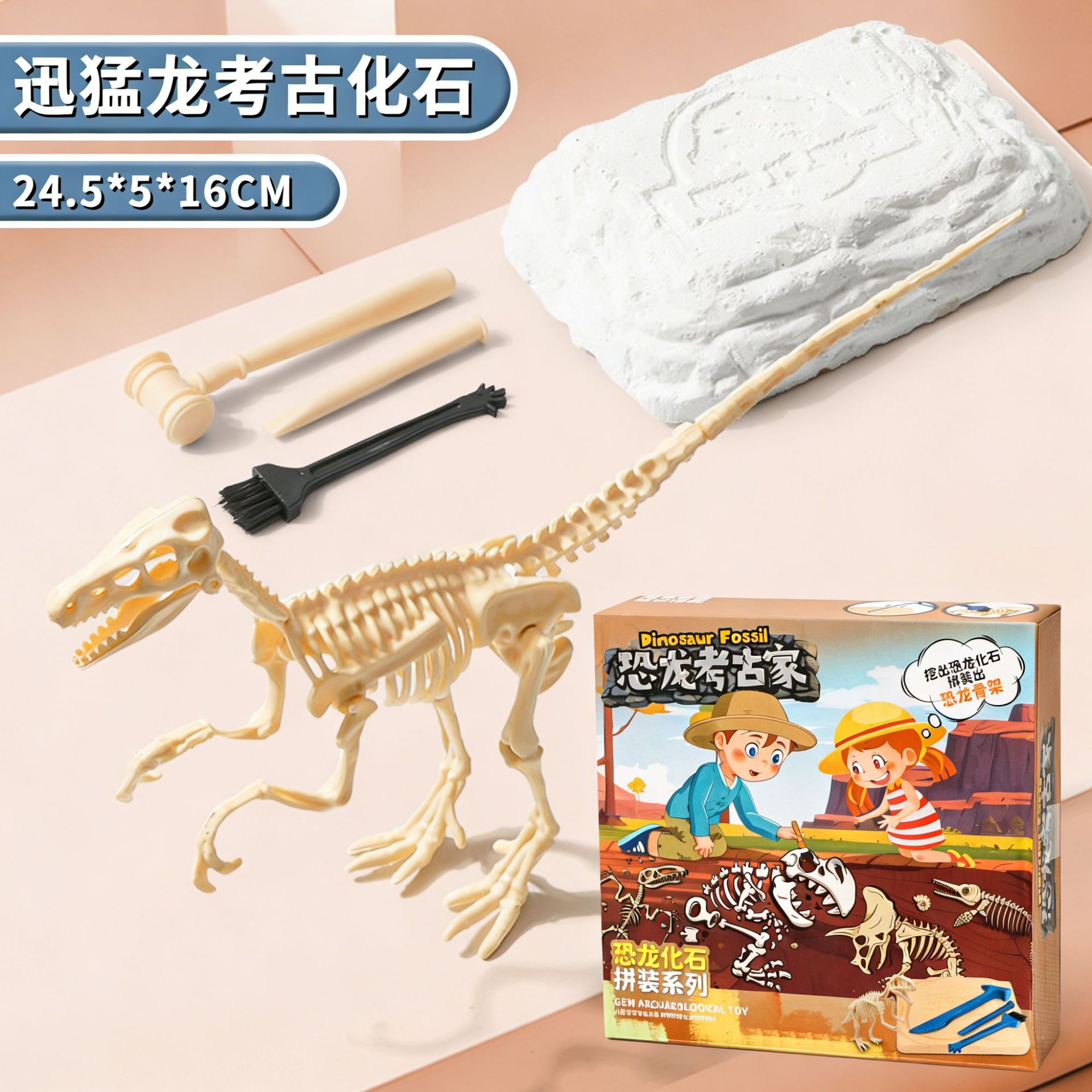 velociraptor archaeology + tool three-piece set (assorted colors in random box)
