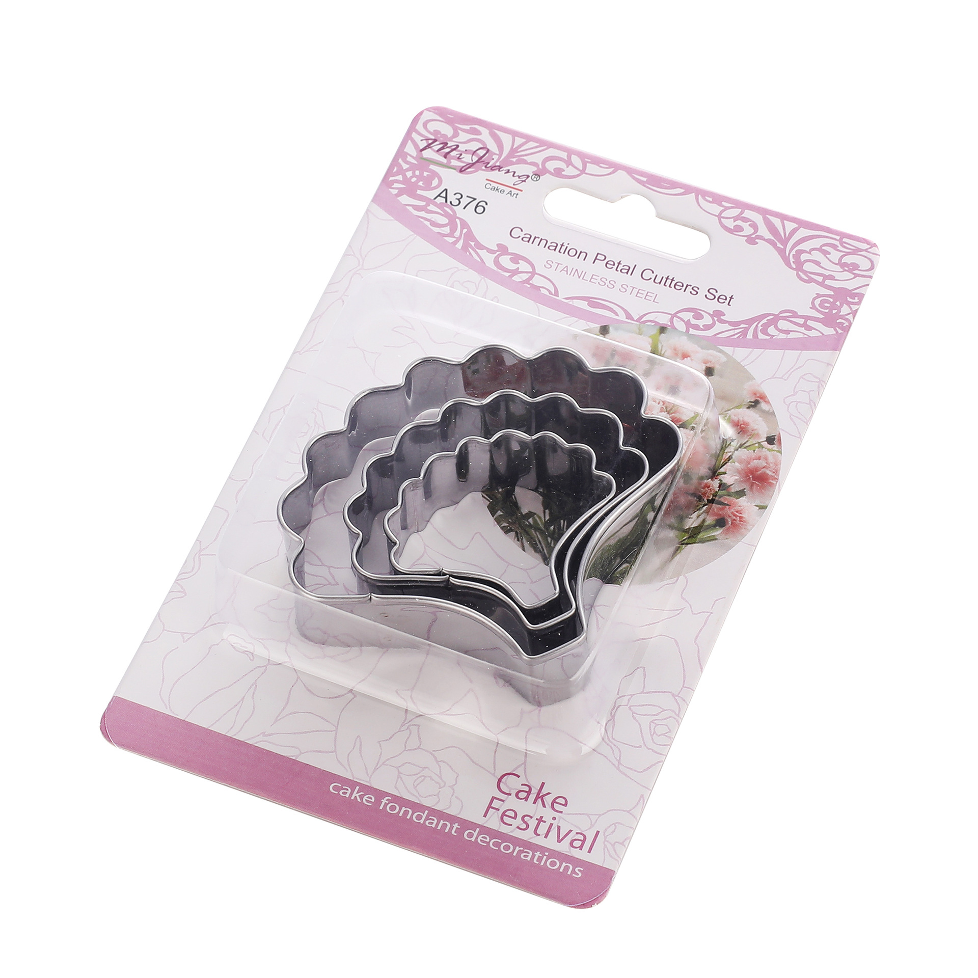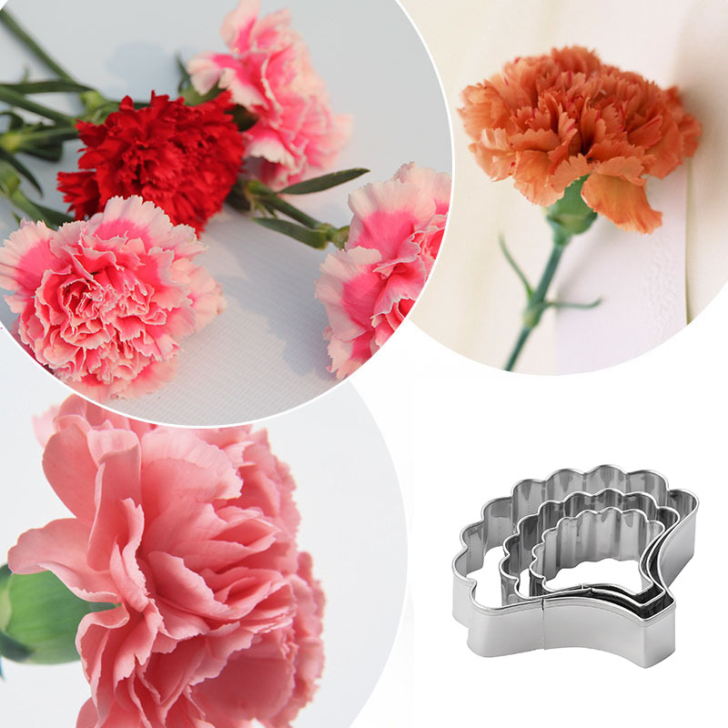 Instructions: First, place the fondant on the fondant silicone mat and roll it flat with a rolling pin. Then, cut out 2-3 petals of the same size using the 3 different designs of this petal mold. Insert a wire into the center of each petal and place it on a foam mat. Use the stainless steel carving set to roll the edges of the petals to create a three-dimensional effect. Next, apply the prepared food coloring to the petals and then place them on a drying mat to allow them to dry for a while. Once the petals are dry and set, arrange them from smallest to largest to create a beautiful and realistic carnation.