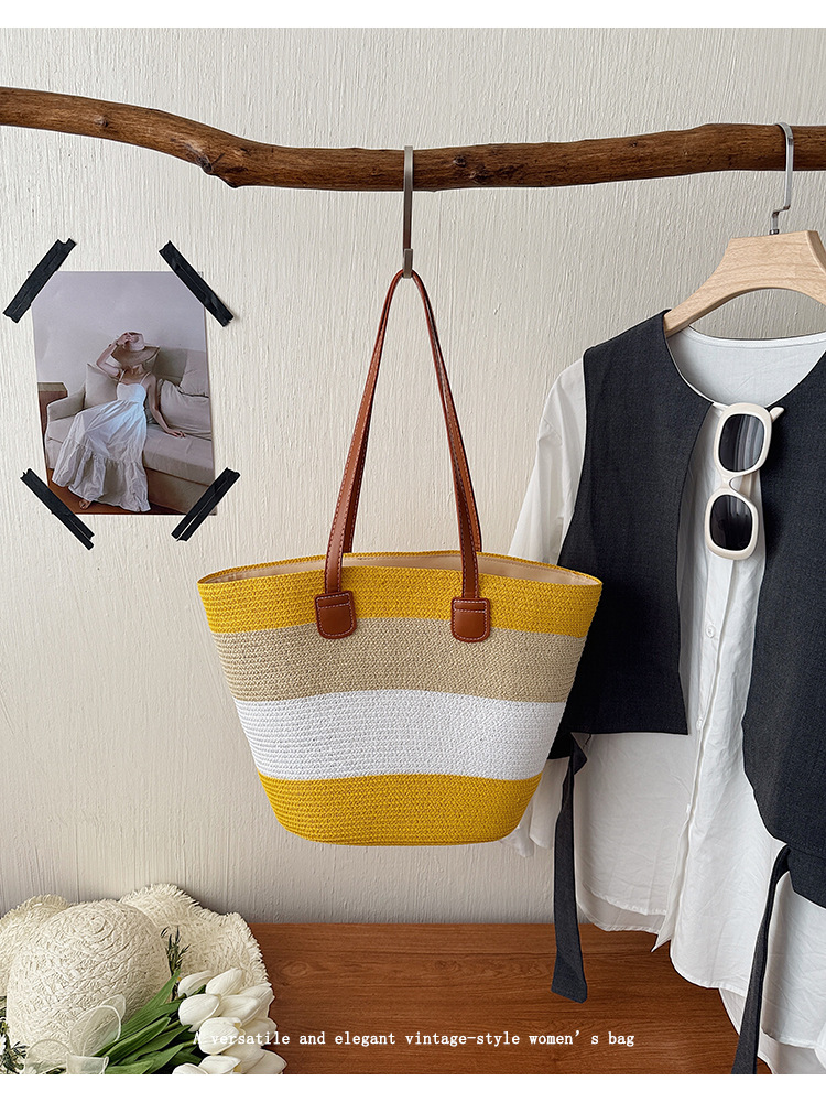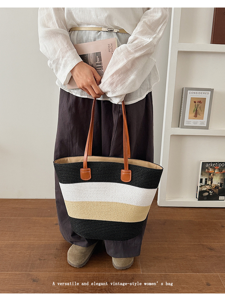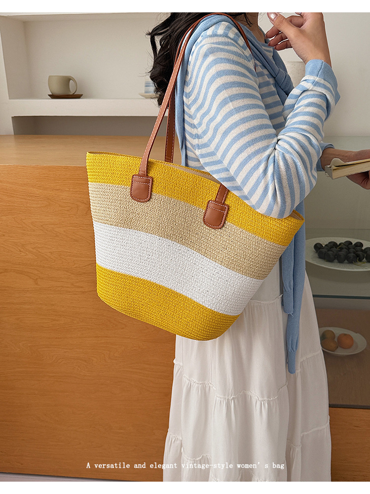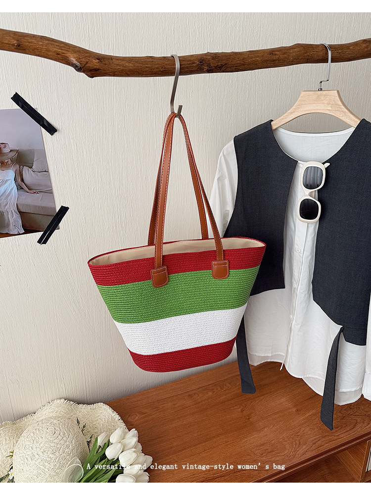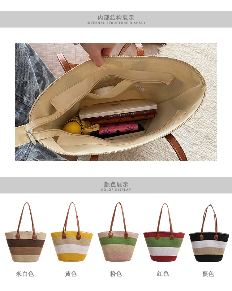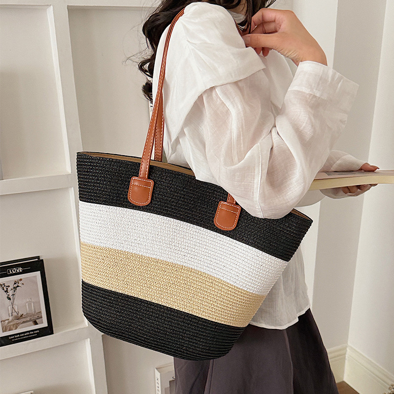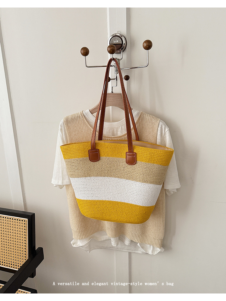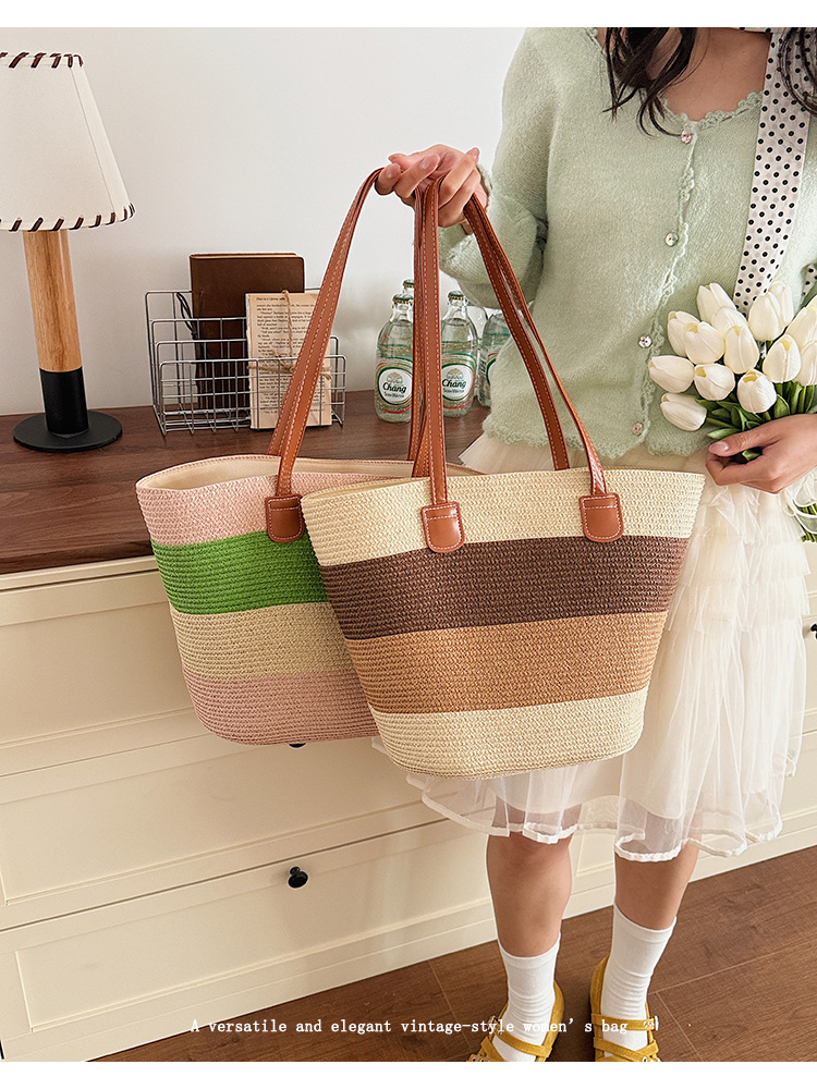 popular elements: striped, woven, straw, contrast color