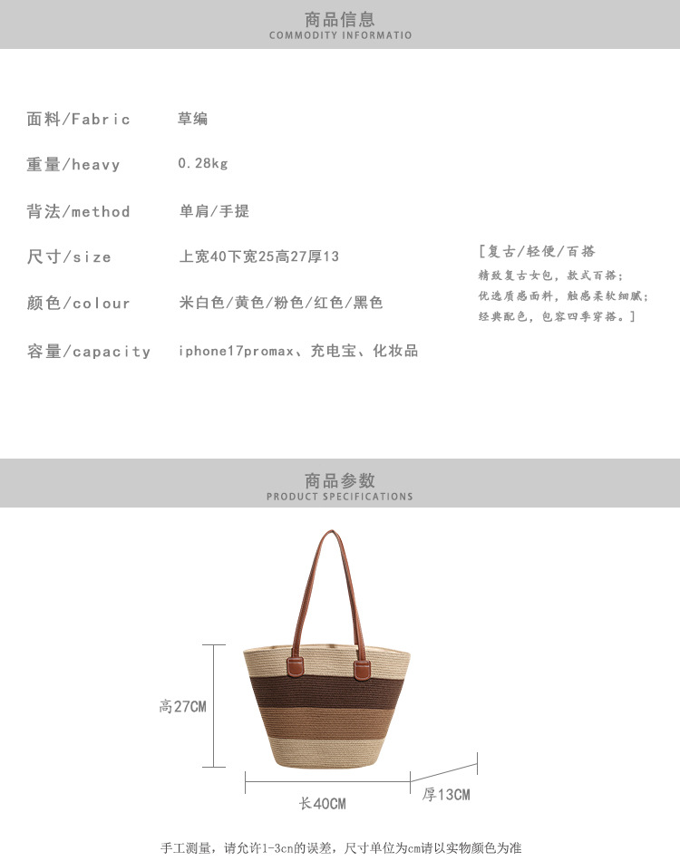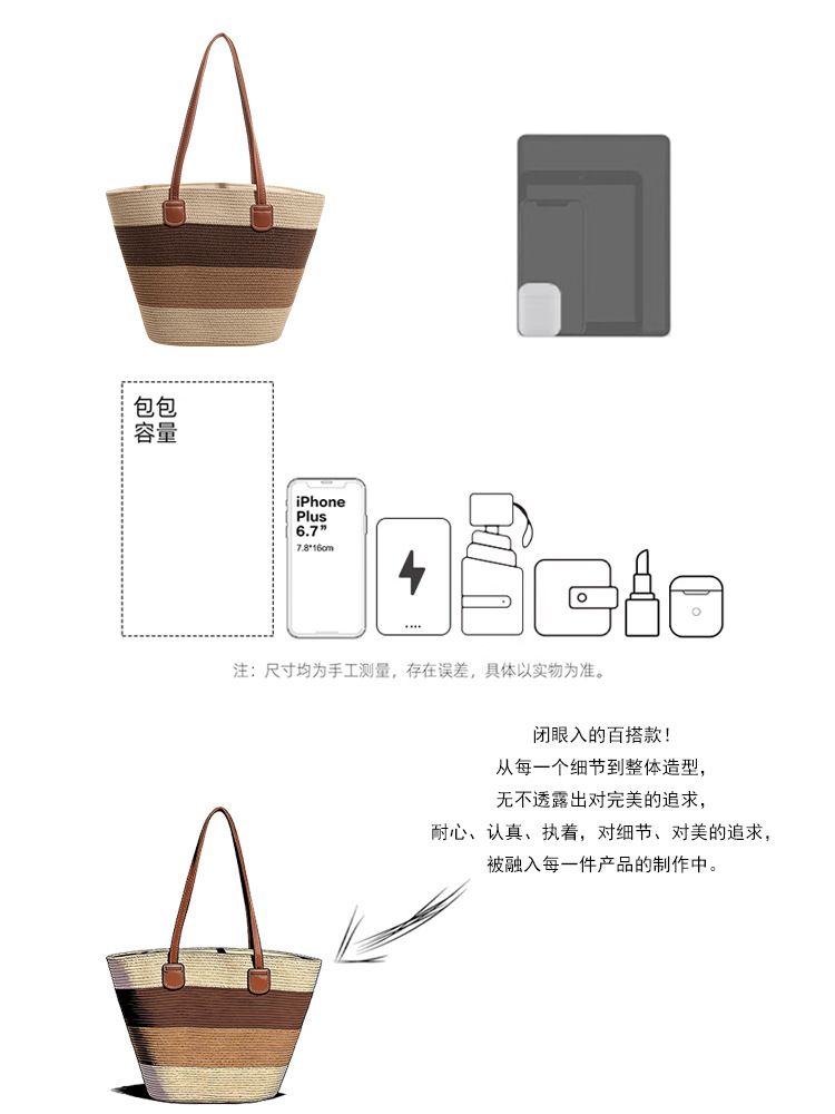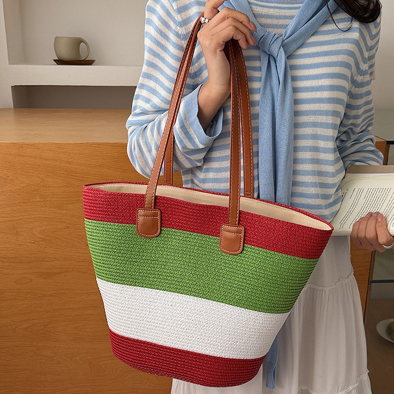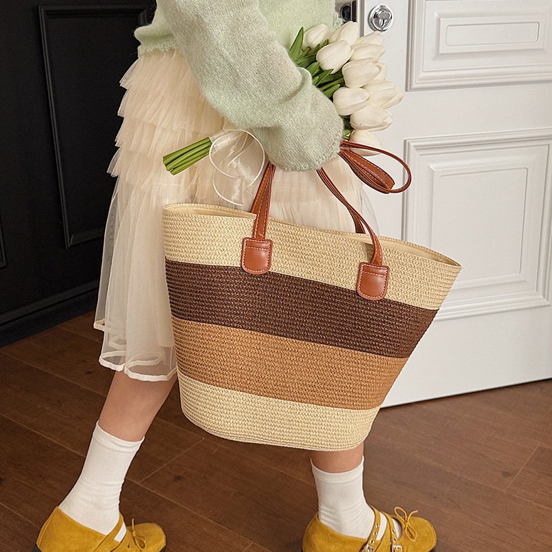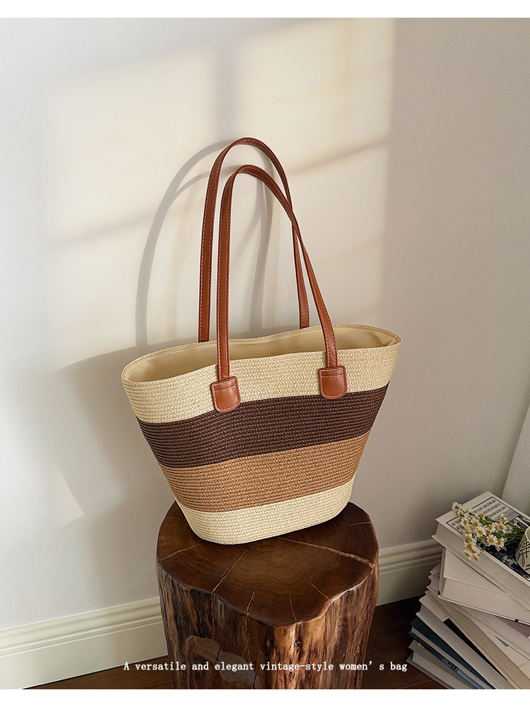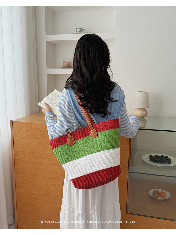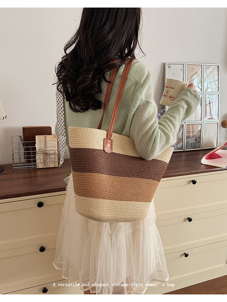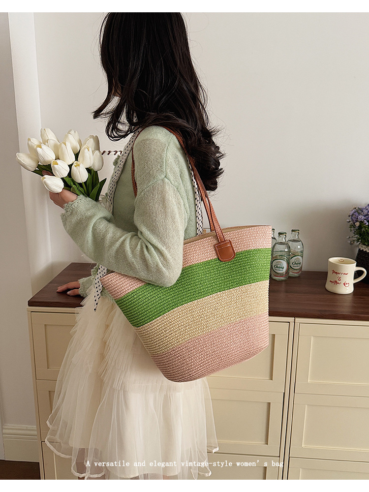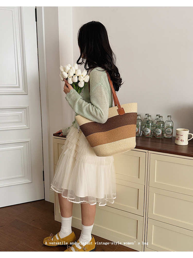 popular elements: striped, woven, straw, contrast color