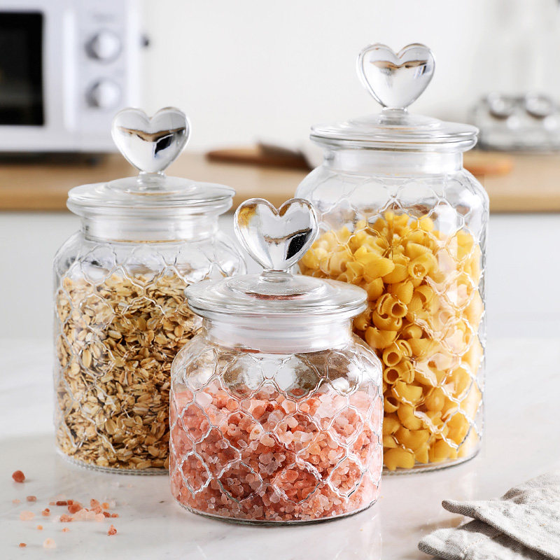 [thickened glass] heart-shaped grid design – large size 1350ml
