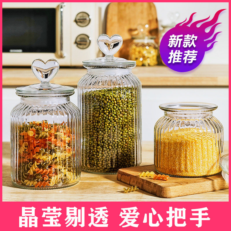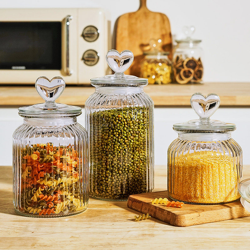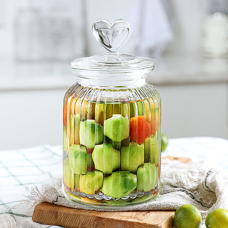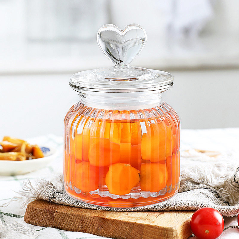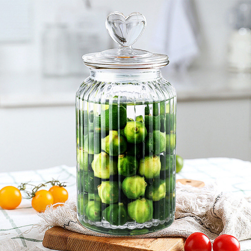 [thickened glass] heart-shaped vertical stripes-large size 1350ml
