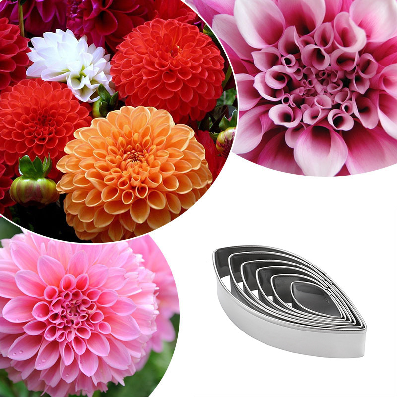 Instructions: First, place the fondant on the fondant silicone mat and roll it flat with a rolling pin. Then, cut 5-8 identical-sized petal shapes using the 7 different designs of this petal mold. Insert a wire into the center of each petal. Place the petals on a sponge mat and use the stainless steel carving set to roll the edges of the petals to create a three-dimensional effect. Next, apply the prepared food coloring to the petals and then place them on a drying mat to allow them to dry for a while. Once the petals are dry and set, arrange them from smallest to largest to create a beautiful and realistic dahlia.