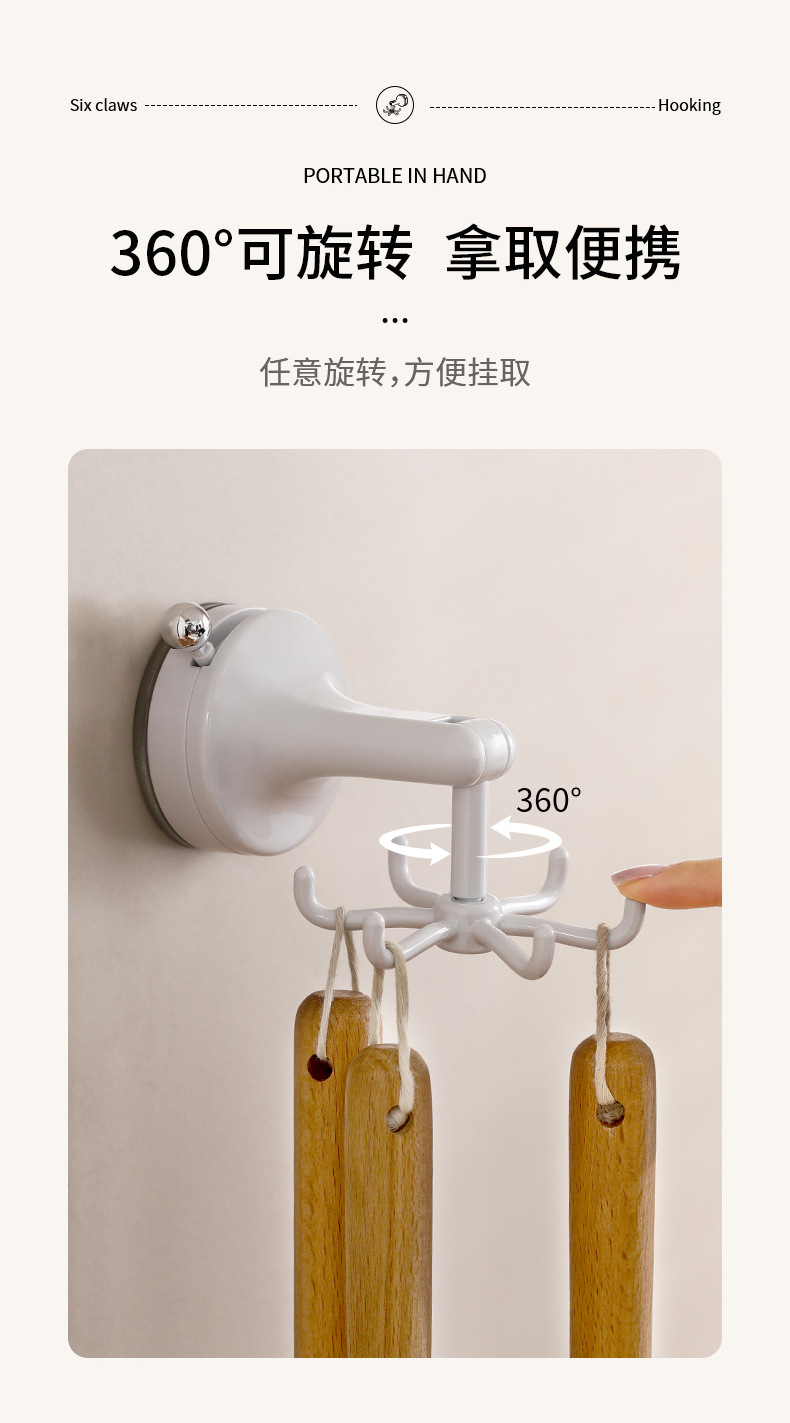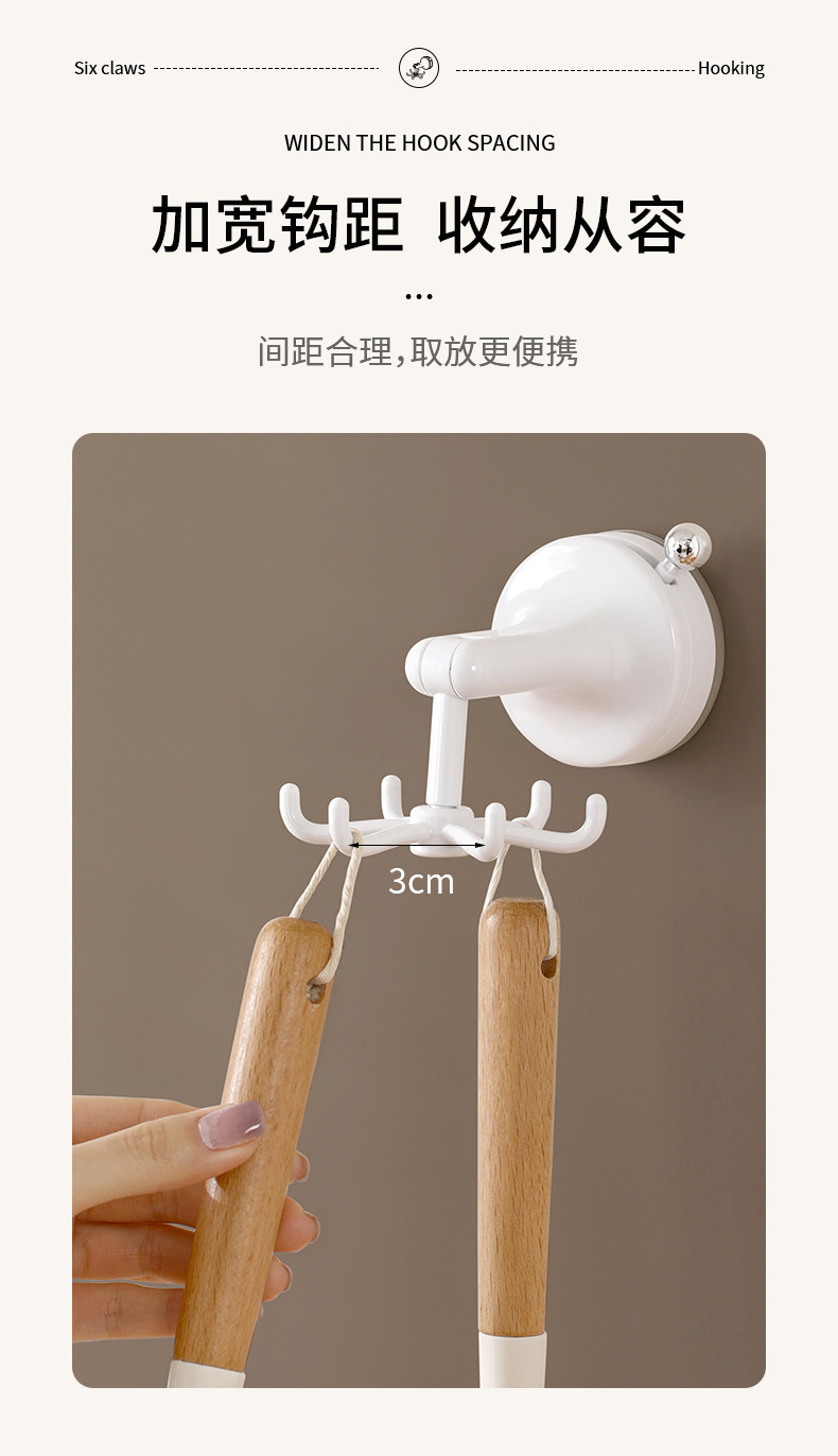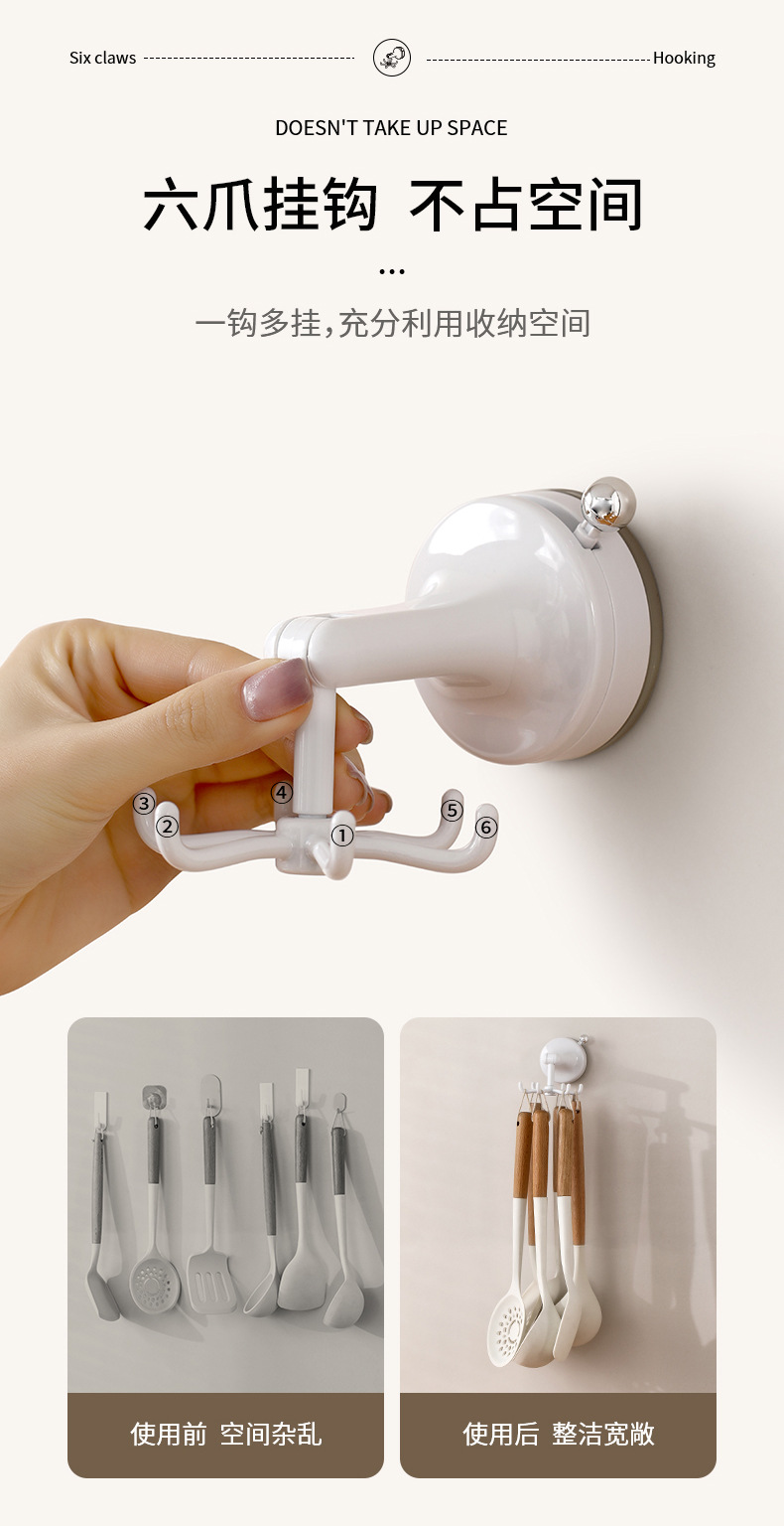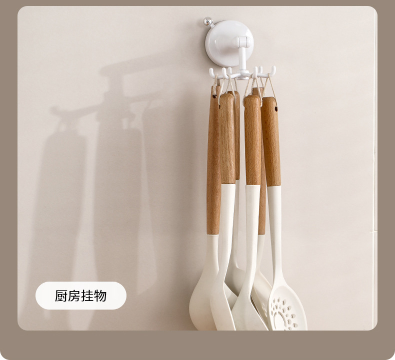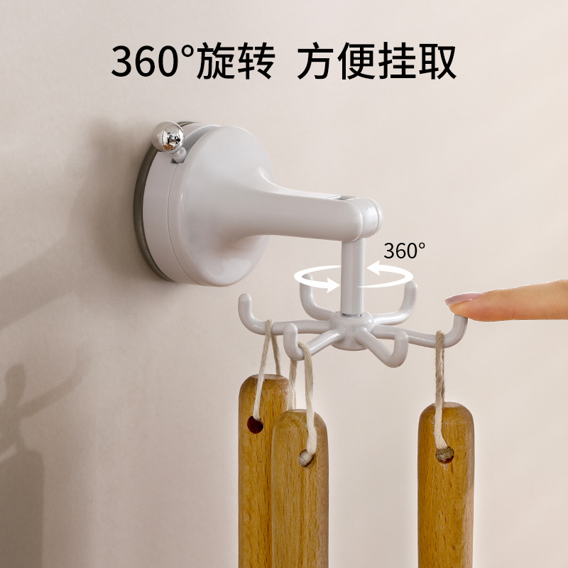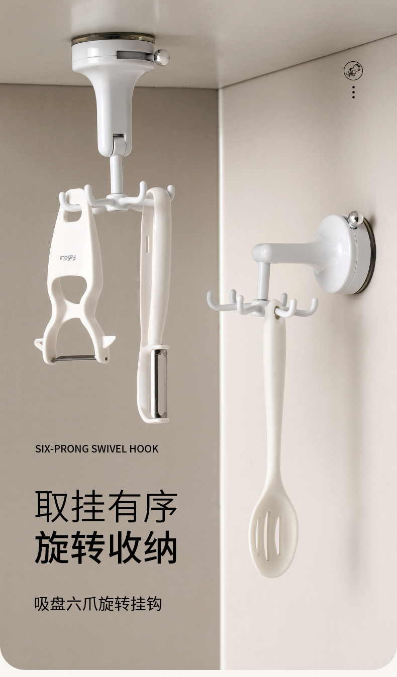 fasola punch-free suction cup hook kitchen spatula spoon storage rack wall-mounted suction cup six claws rotating hook