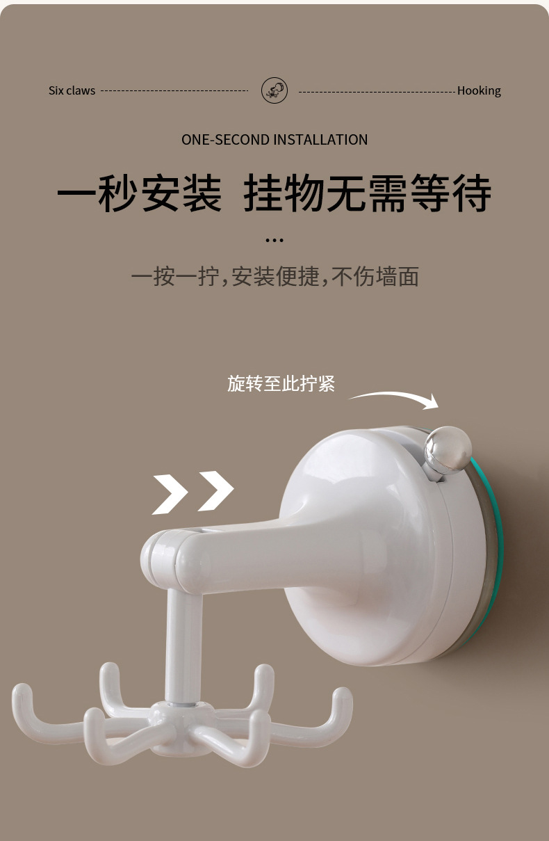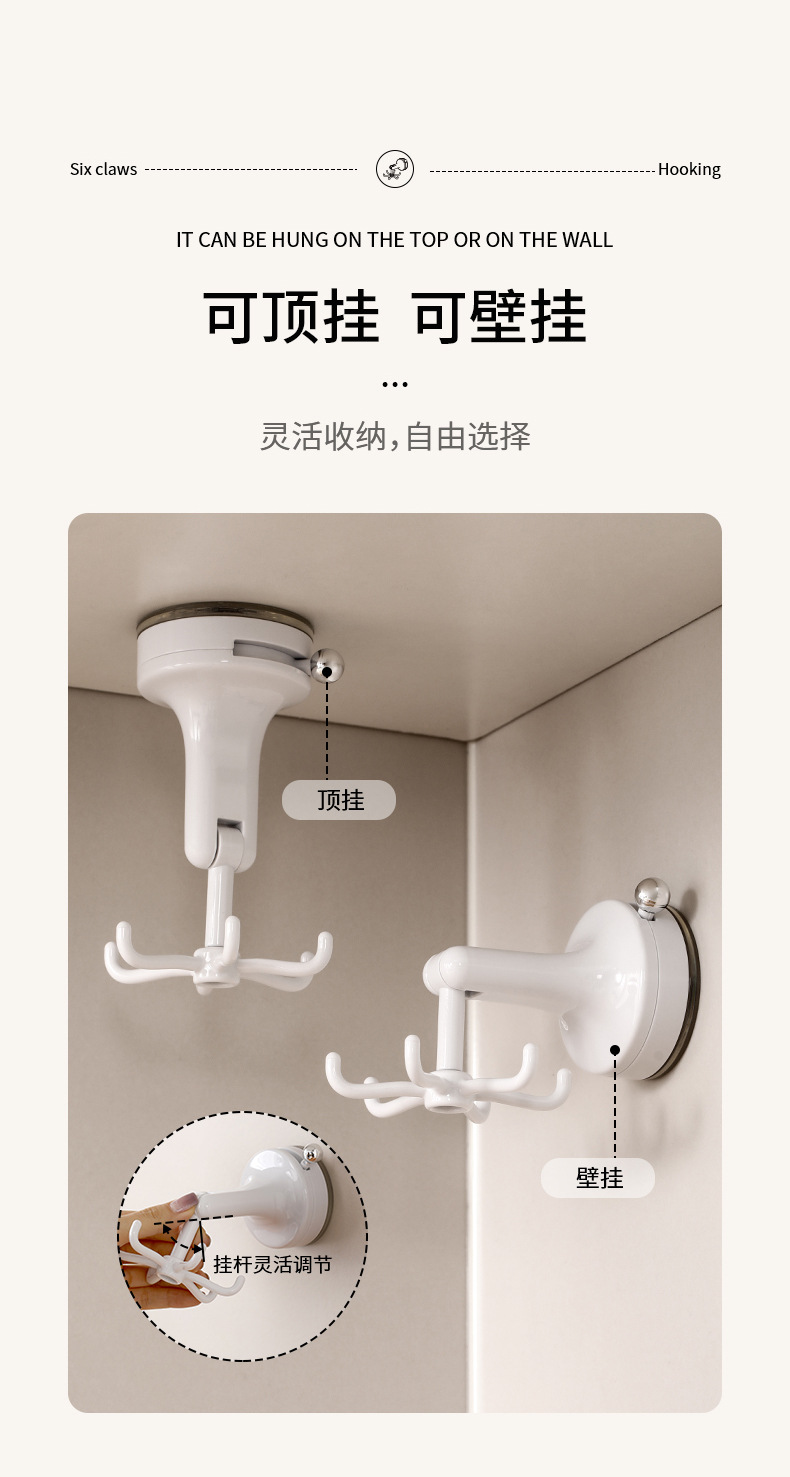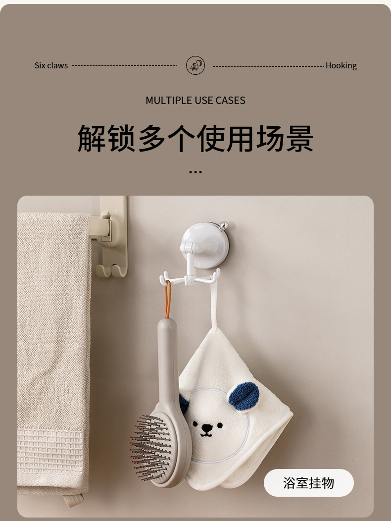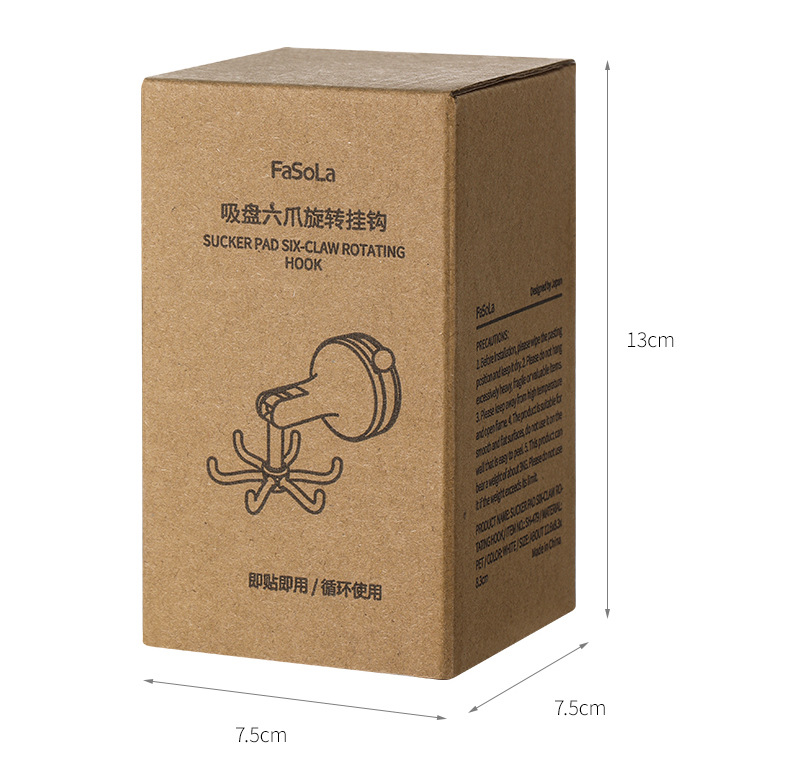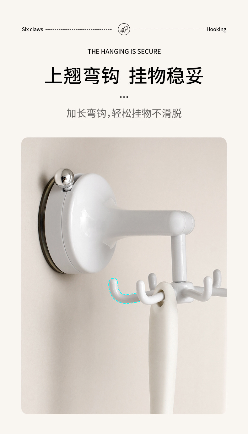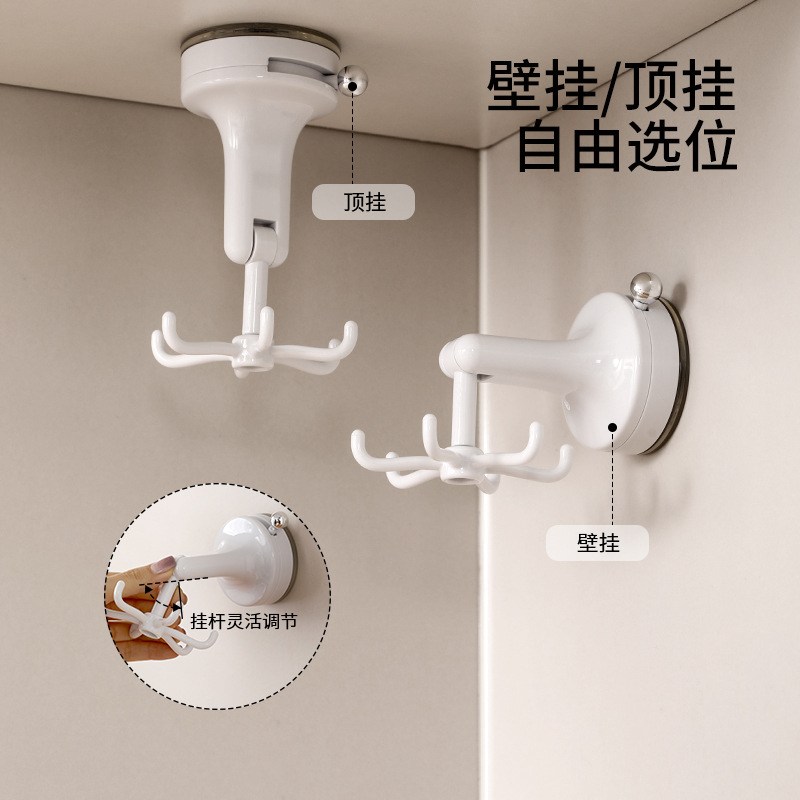 fasola punch-free suction cup hook kitchen spatula spoon storage rack wall-mounted suction cup six claws rotating hook