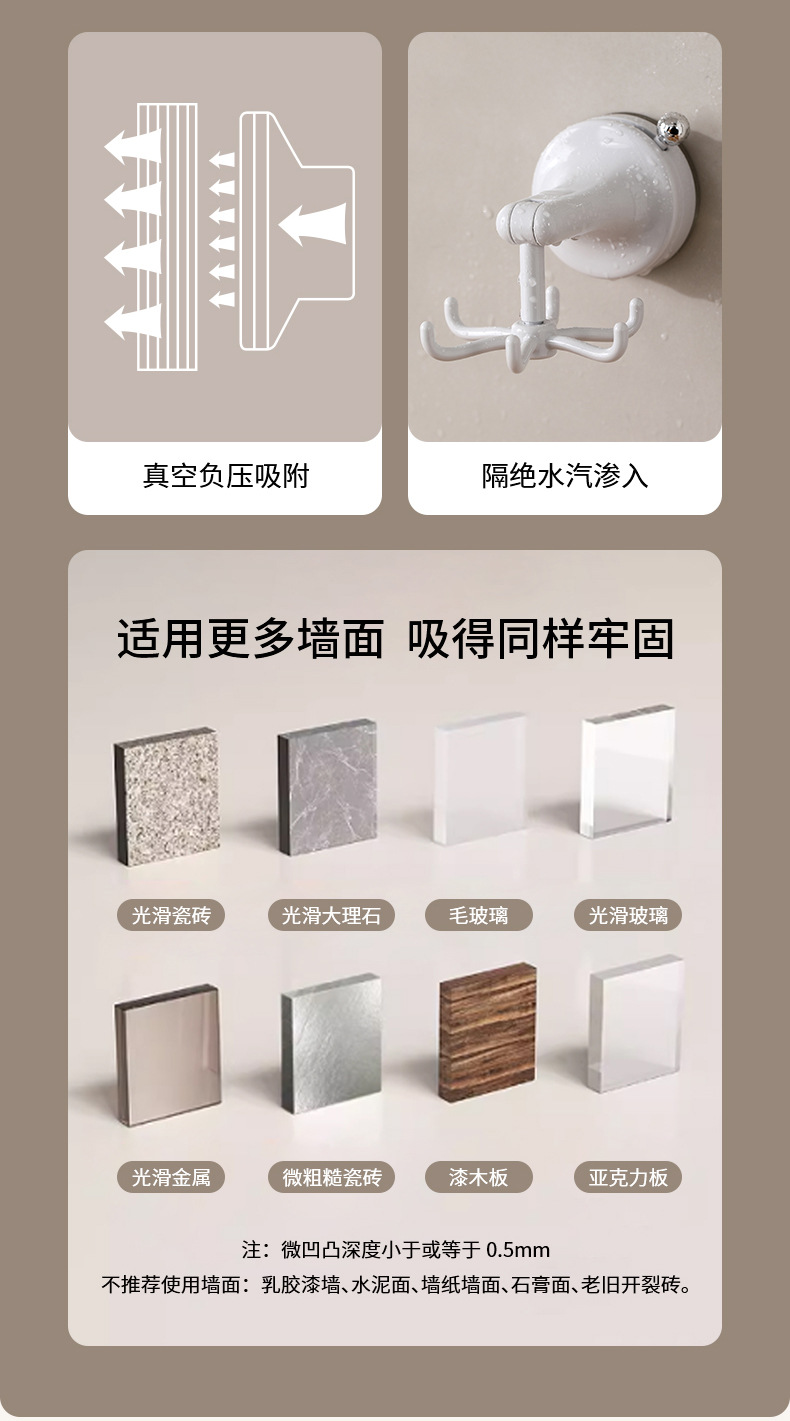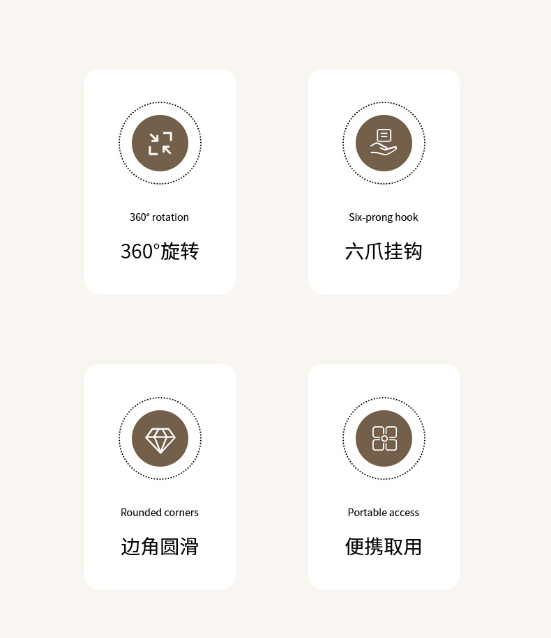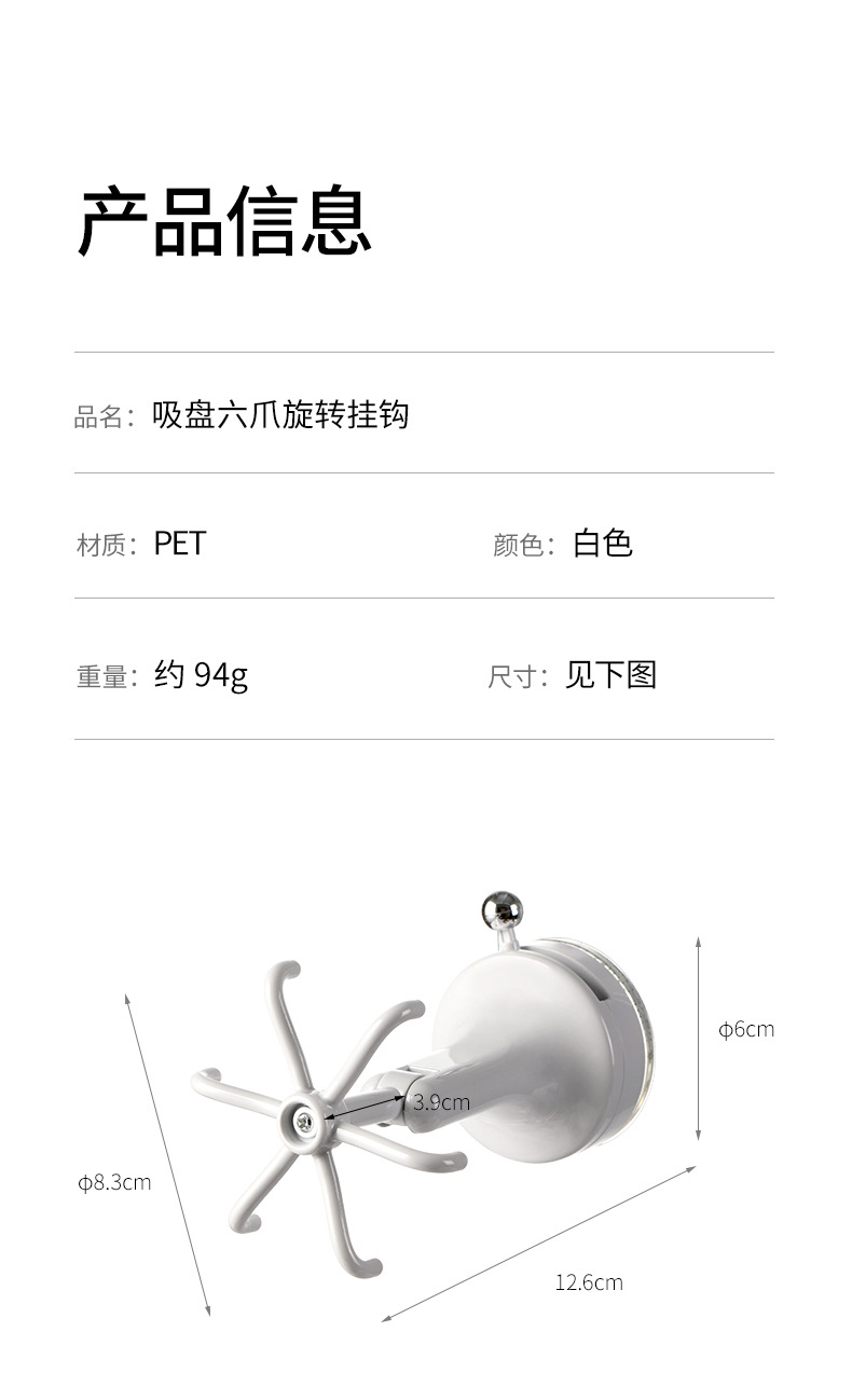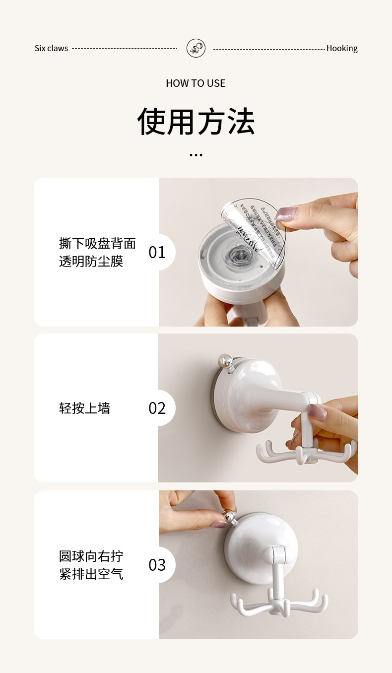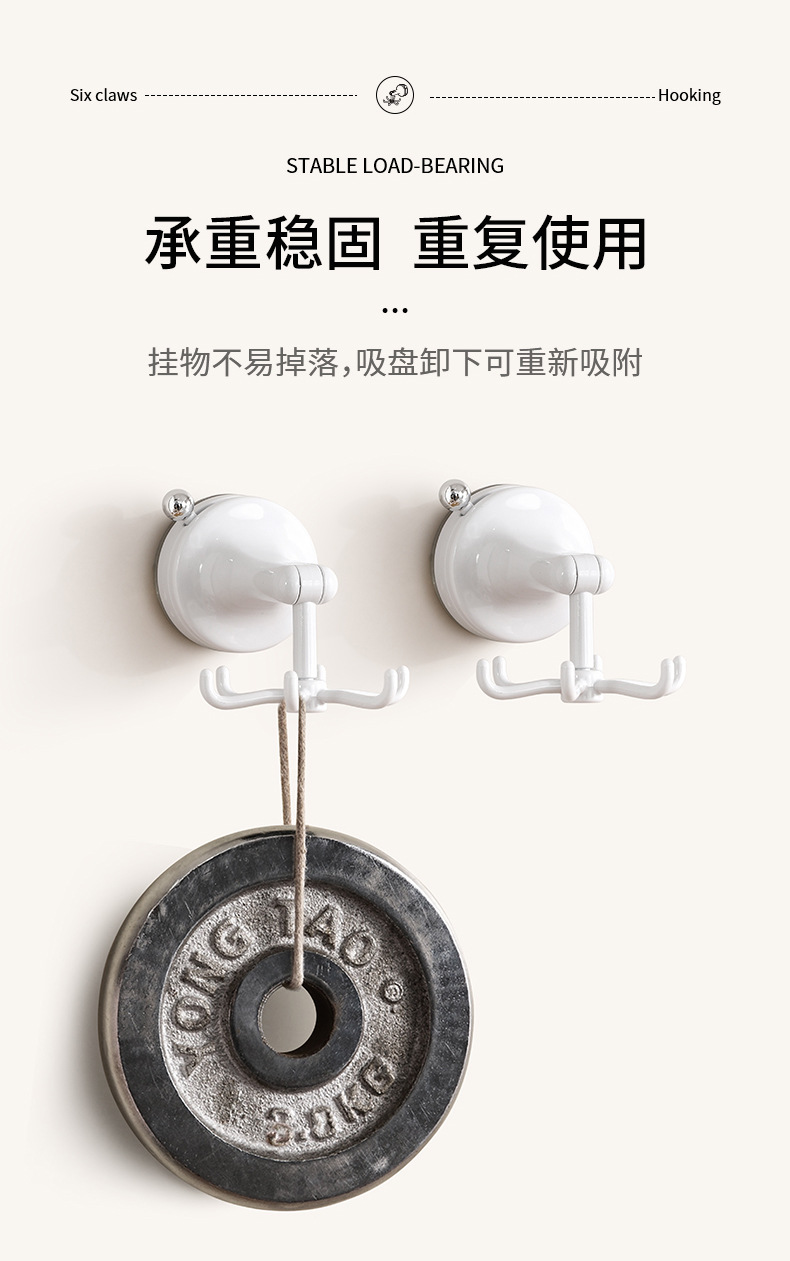 fasola punch-free suction cup hook kitchen spatula spoon storage rack wall-mounted suction cup six claws rotating hook