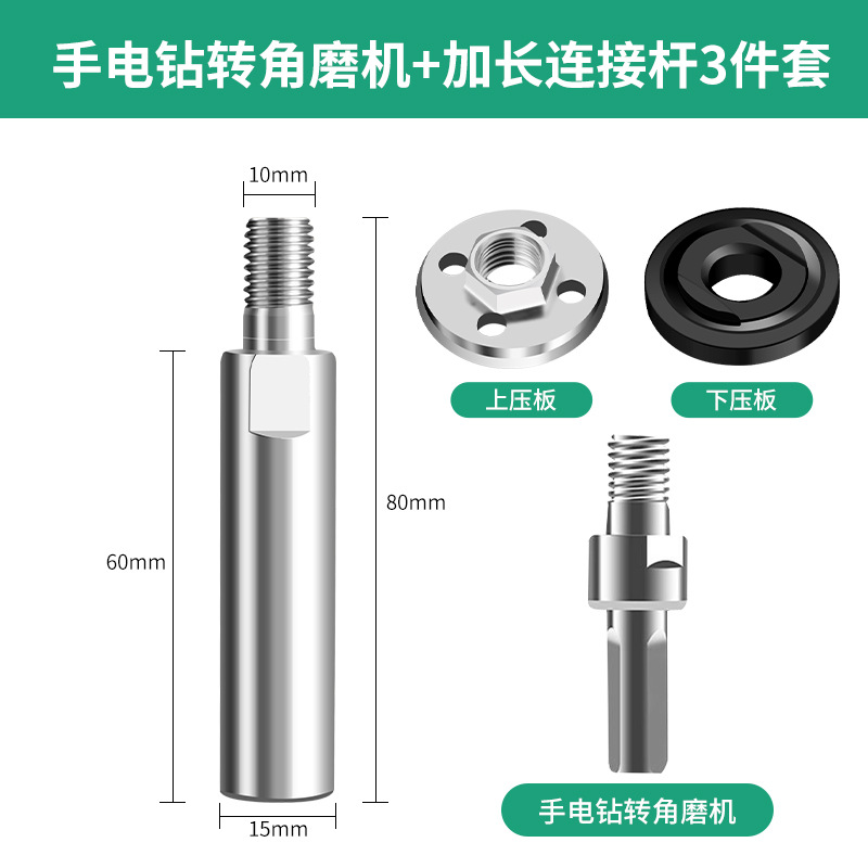 electric hand drill to angle grinder + connecting rod 3-piece set
