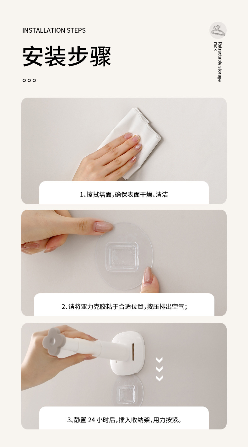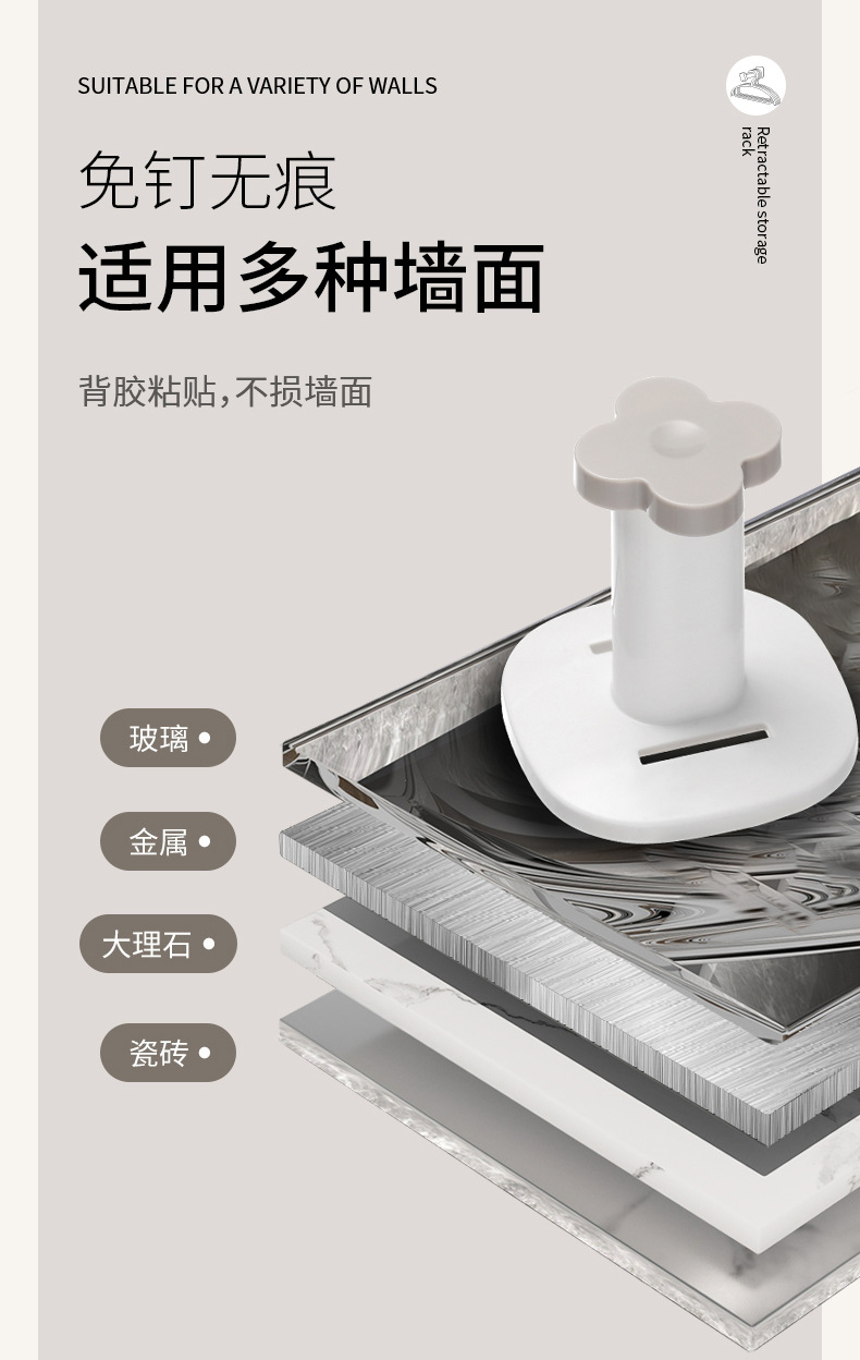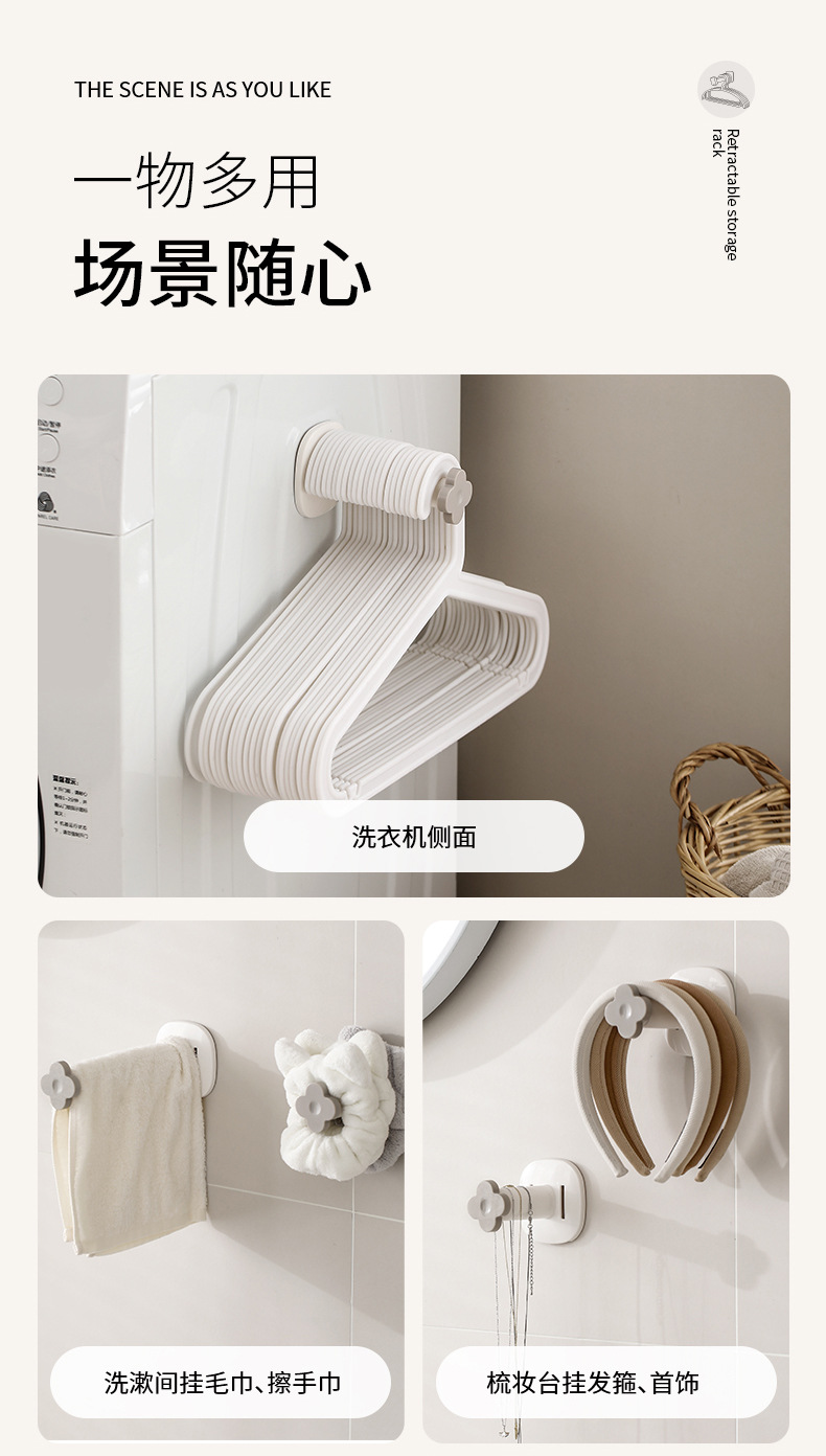 fasola hanger storage rack punch-free home balcony drying rack organizing hook wall-mounted retractable storage rack