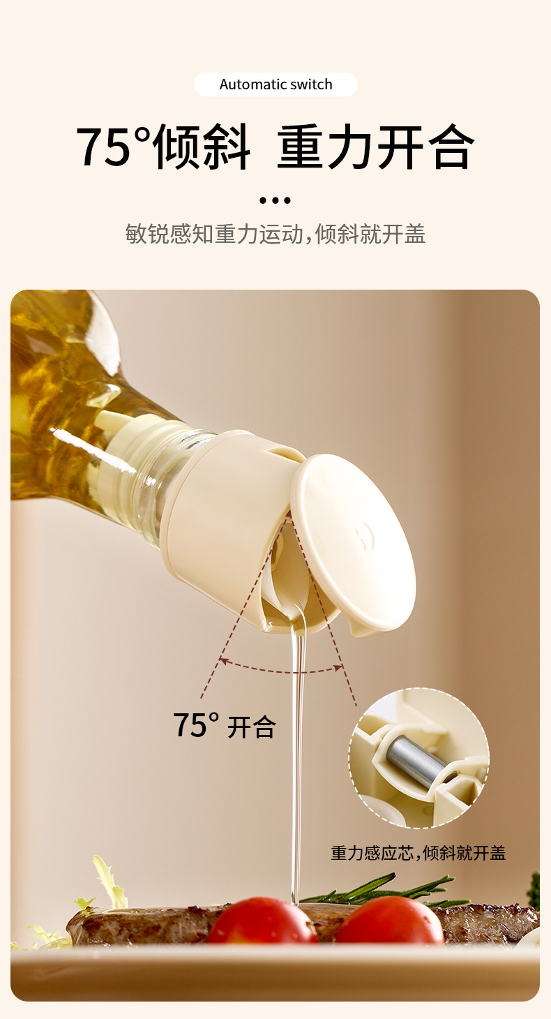 fasola kitchen silicone automatic opening and closing oil bottle nozzle non-drip backflow vinegar and soy sauce spice jar lid pouring nozzle