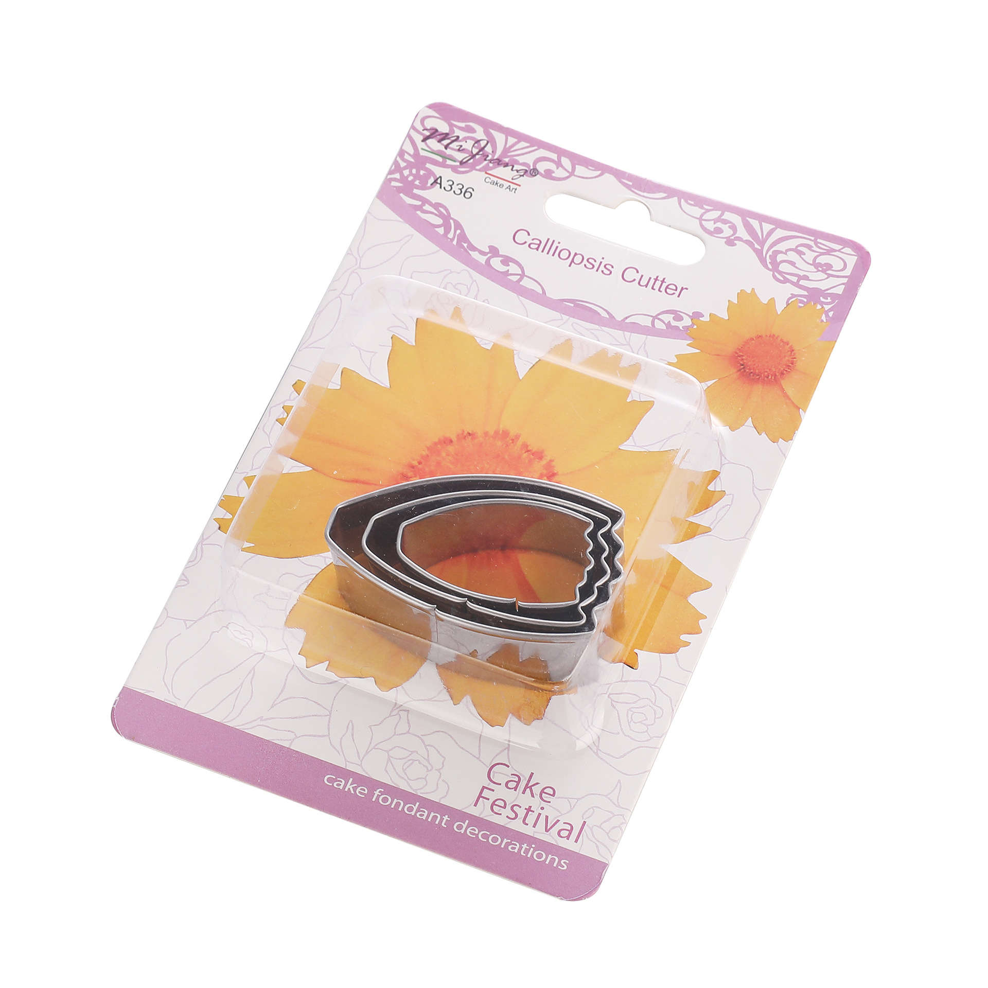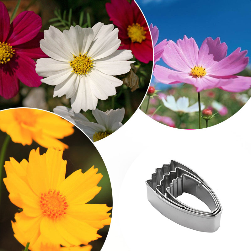Instructions: First, place the fondant on the fondant silicone mat and roll it flat with a rolling pin. Then, cut out two identical petal shapes using the three different designs of this petal mold. Insert a wire into the center of each petal and place them on a foam mat. Use the stainless steel carving set to roll the edges of the petals to create a three-dimensional effect. Next, apply the prepared food coloring to the petals and then place them on a drying mat to allow them to dry for a while. Once the petals are dry and set, arrange them from smallest to largest to create a beautiful and realistic Persian chrysanthemum.