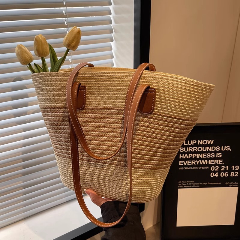 wide braid big bag-beige, wide braid big bag-khaki, cotton and linen strip