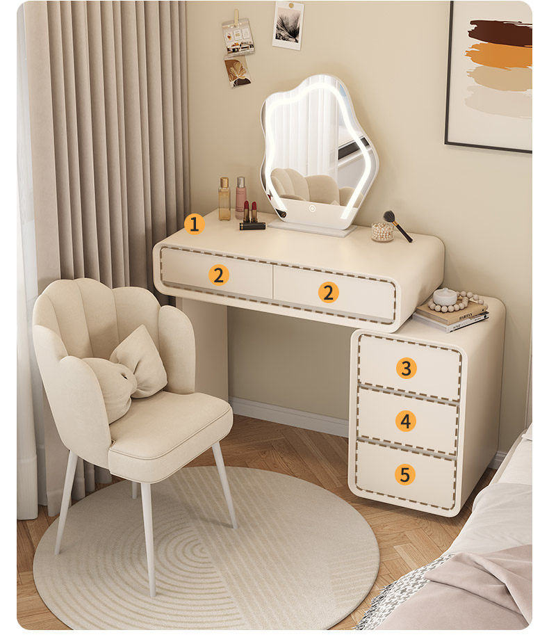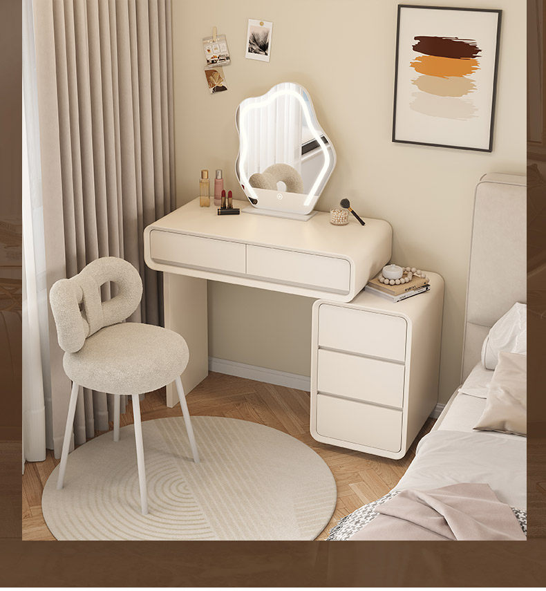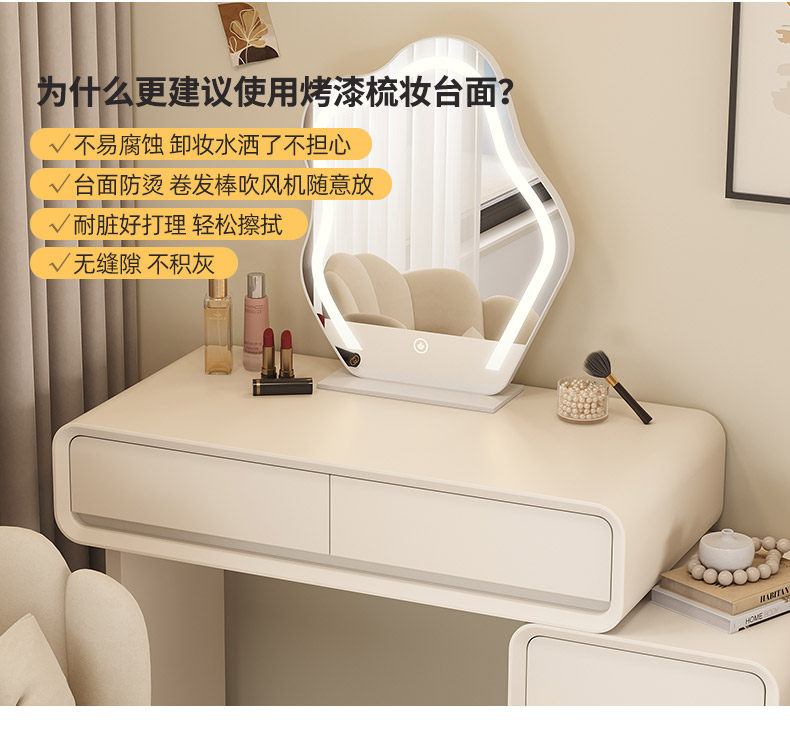 solid wood baked paint makeup table small apartment bedroom modern simple cream-colored high-end storage cabinet makeup table 60cm