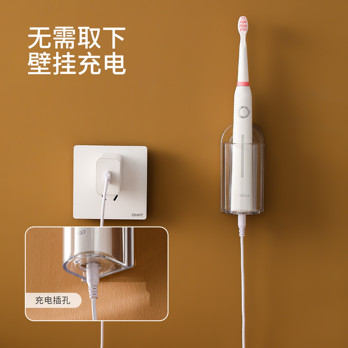 fasola electric toothbrush rack punch-free wall-mounted tooth-cleaners rack family bathroom toothbrush holder