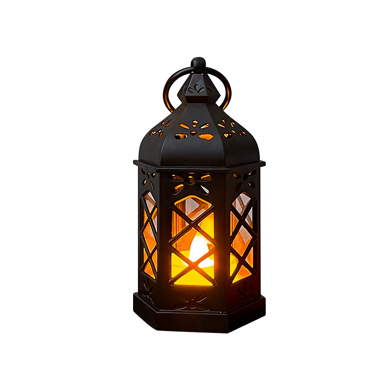 retro hexagonal storm lantern-black