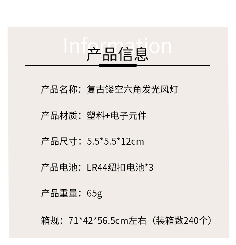 【Product Name】: Retro Lattice Hexagonal Wind Lamp