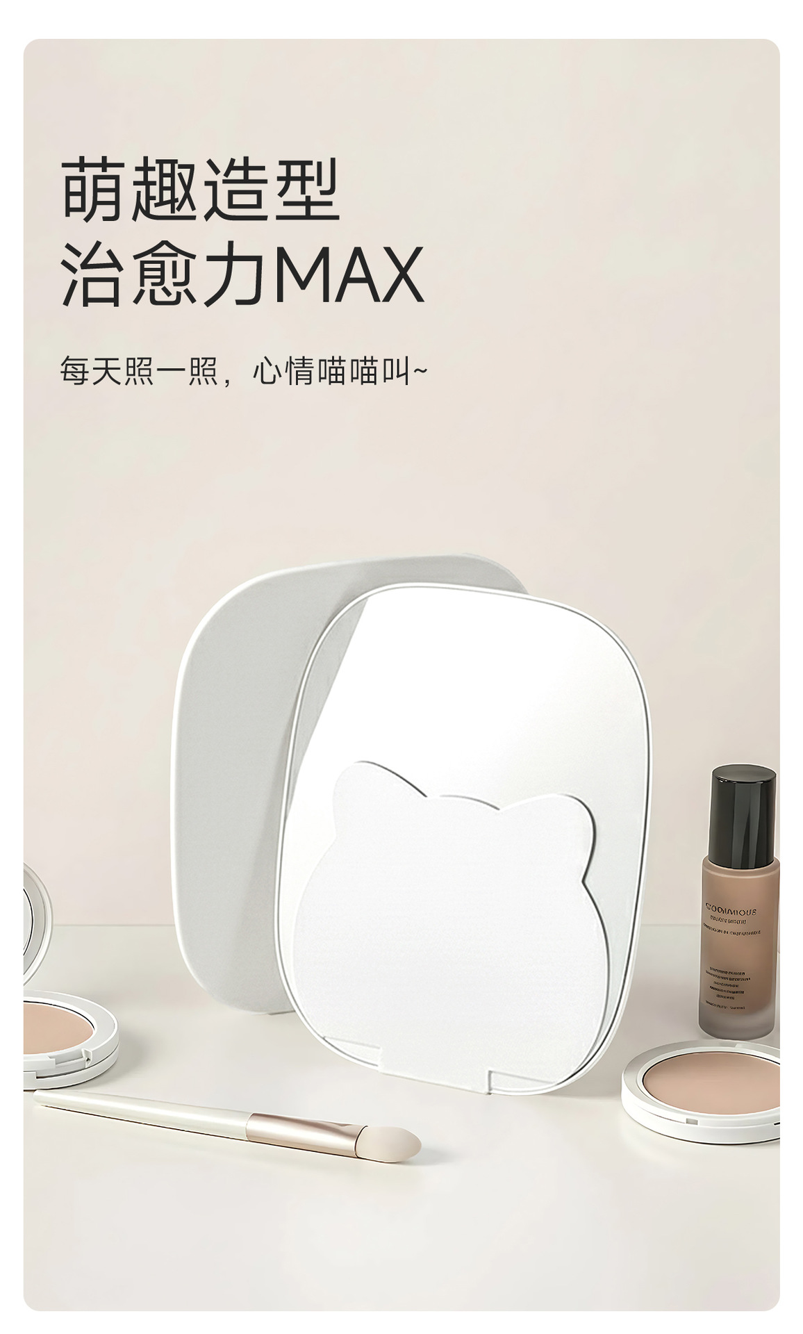 meow support cosmetic mirror (white)