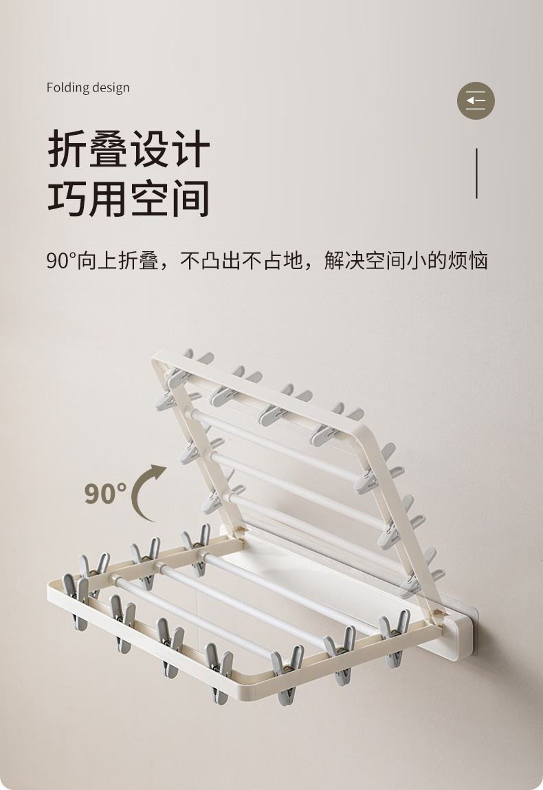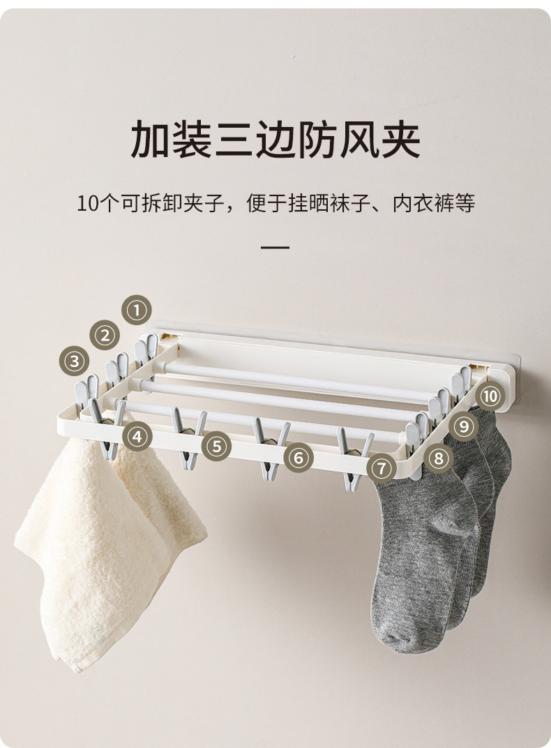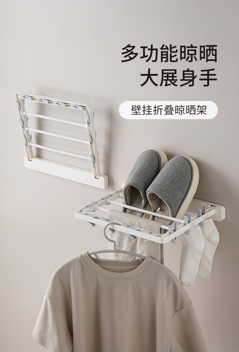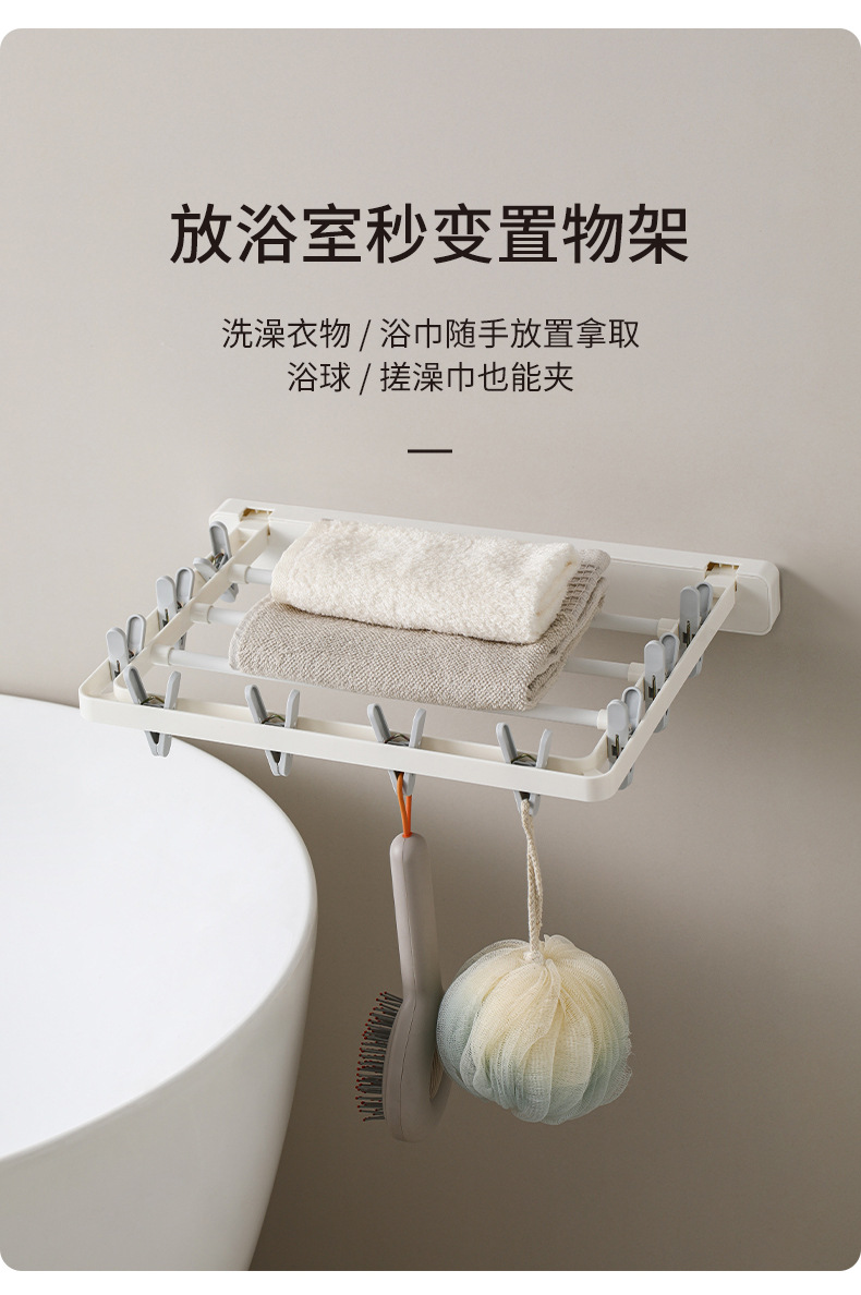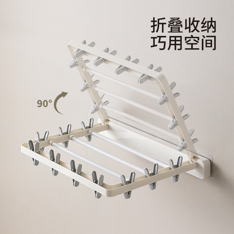 wall-mounted folding drying rack (10 clips)