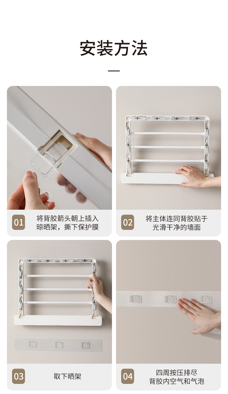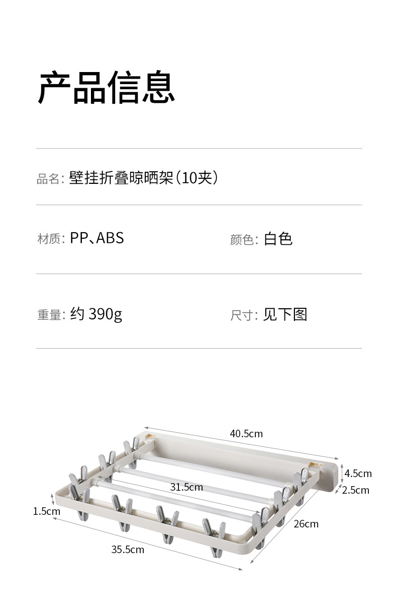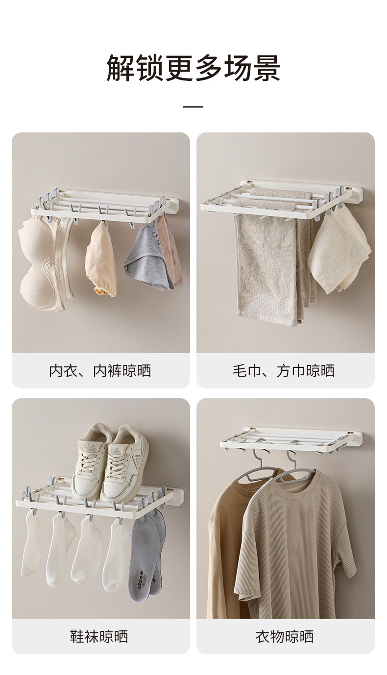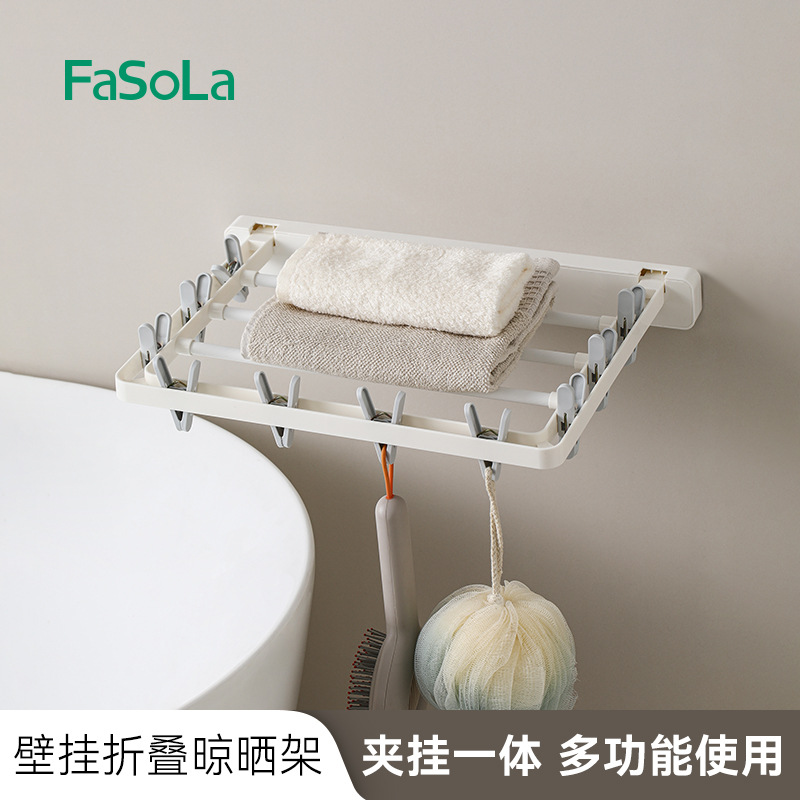 wall-mounted folding drying rack (10 clips)