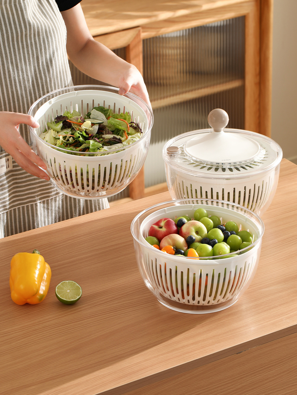 fasola drain basket kitchen fruit salad manual high-speed centrifugal spin-drying water drainer multi-purpose fruit and vegetable dehydrater