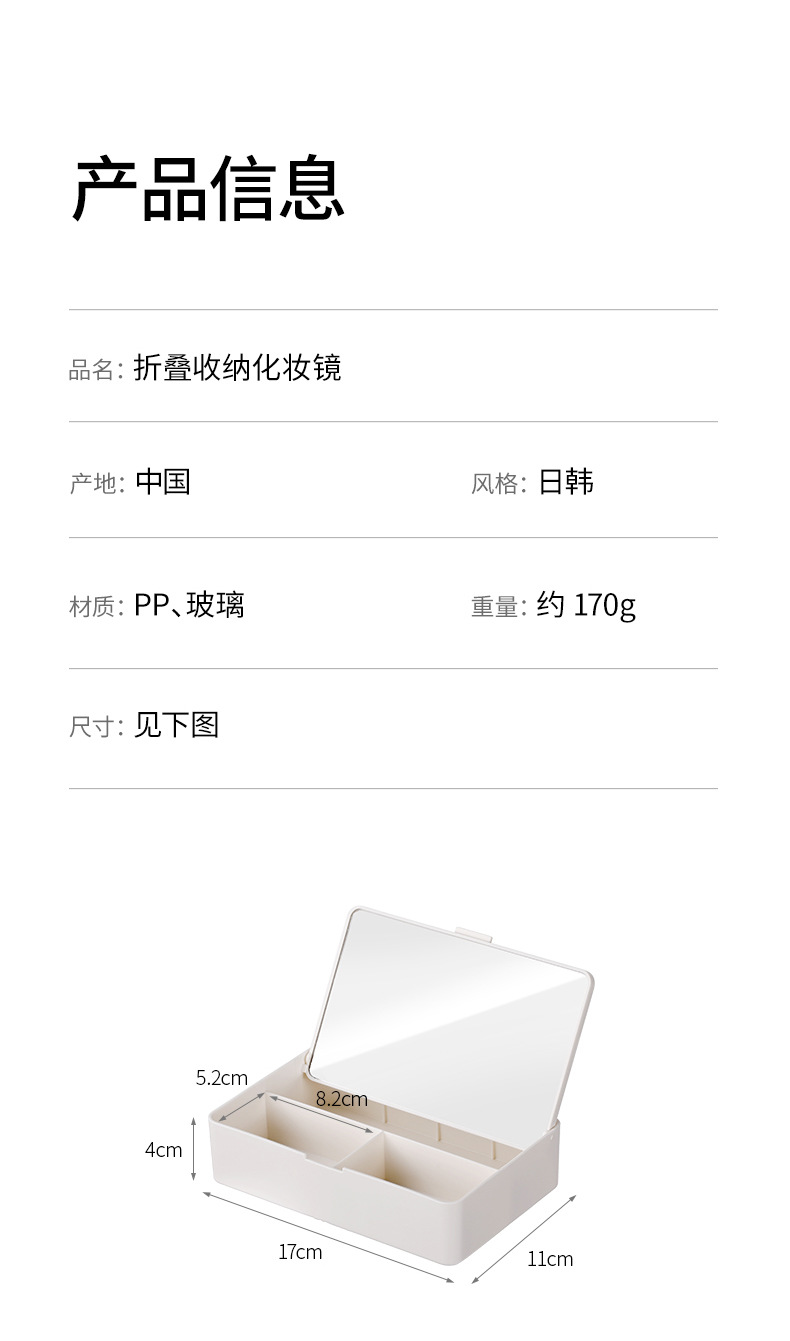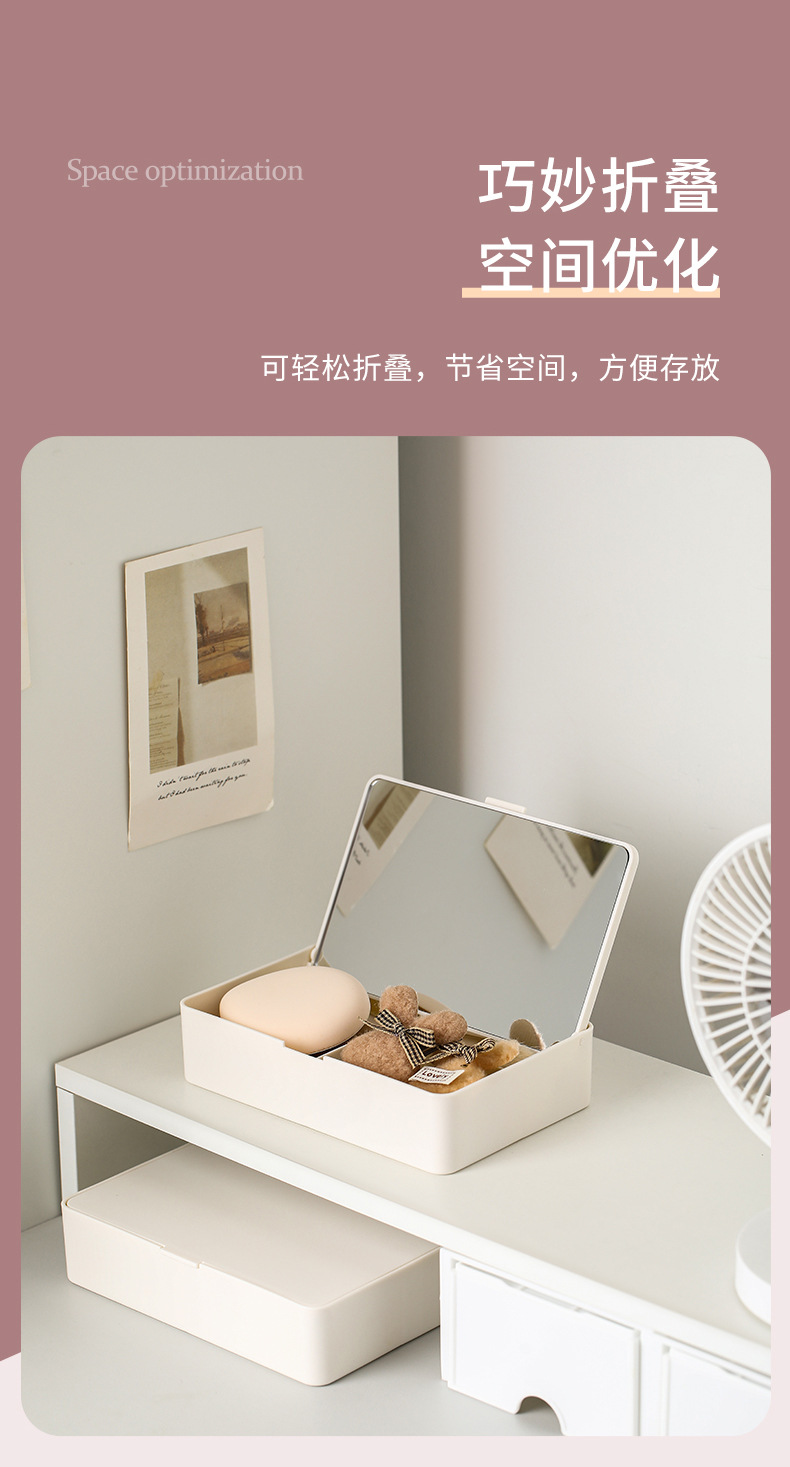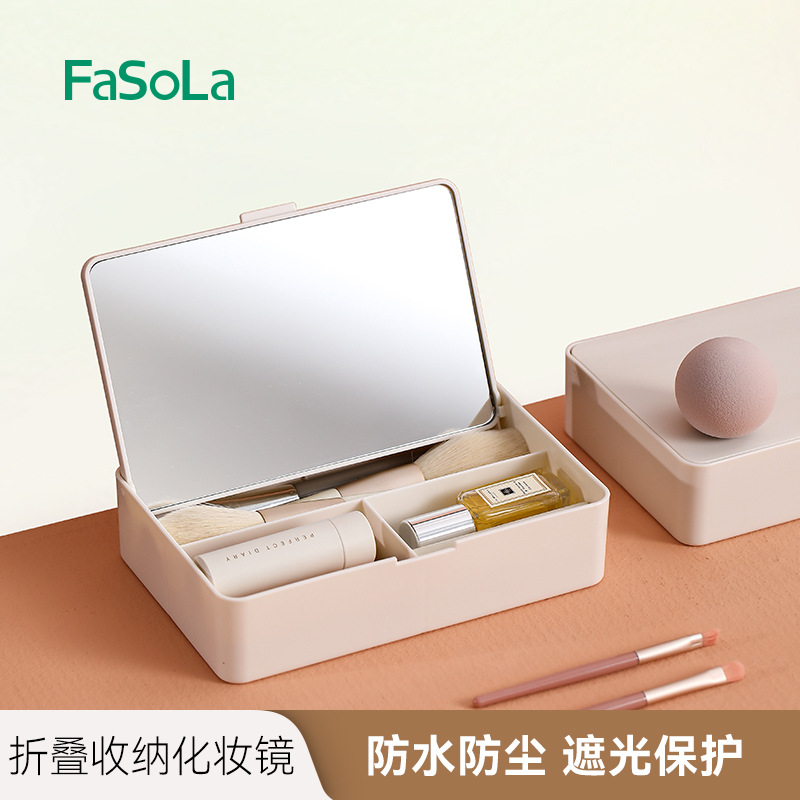fasola folding makeup mirror women's belt storage box student dormitory desktop household small dressing table mirror