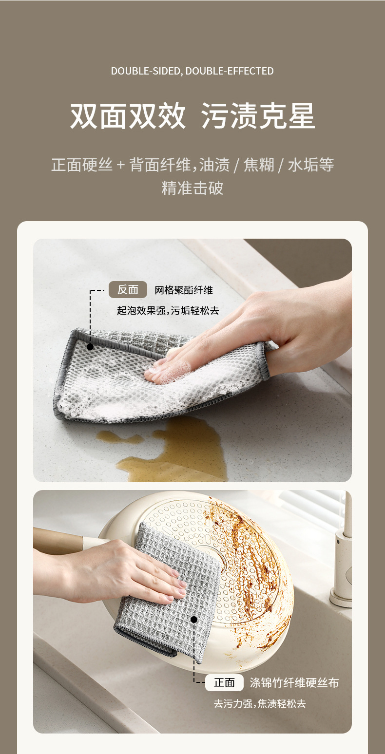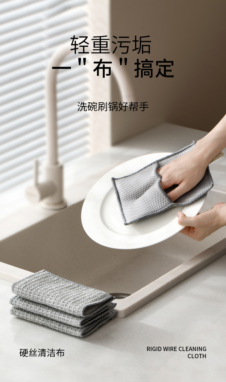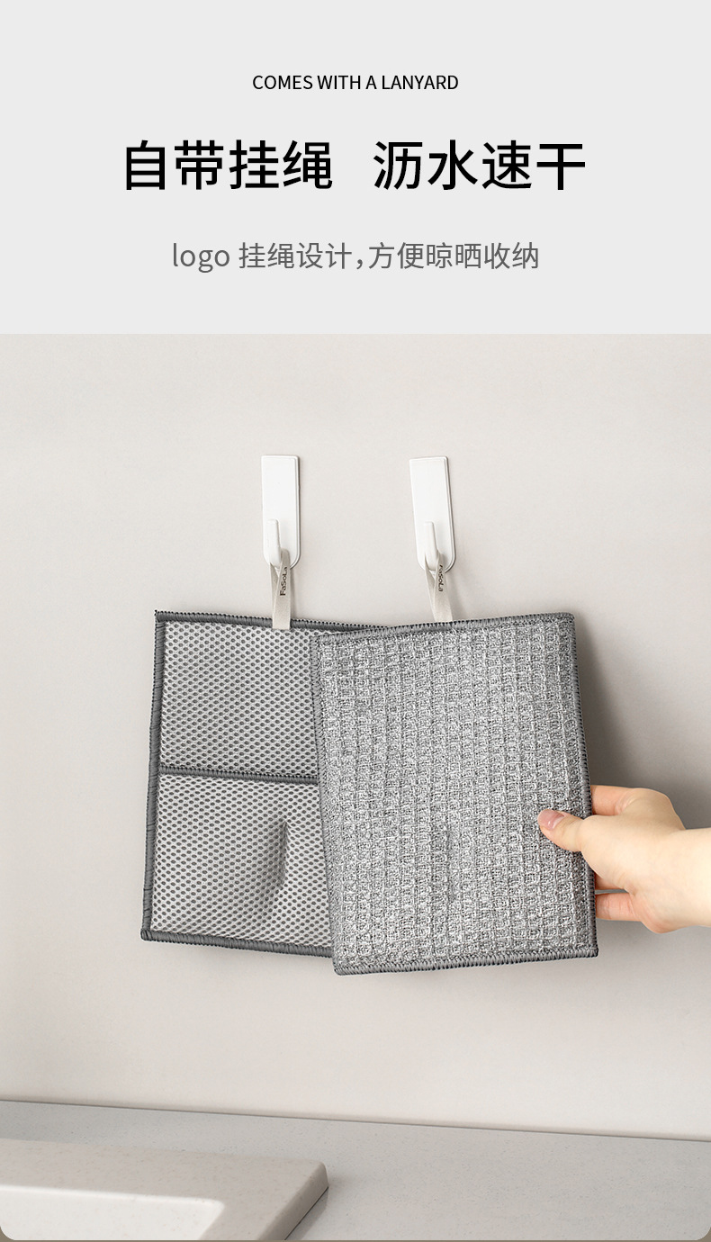 fasola double-sided dishcloth household cleaning silver silk rag brush bowl gloves easy to clean durable hard silk cleaning cloth