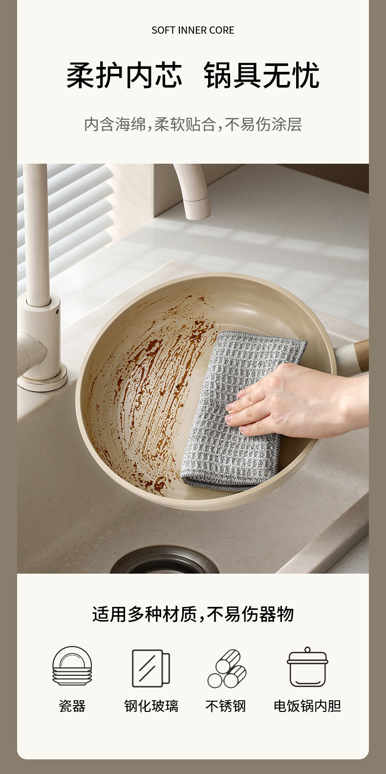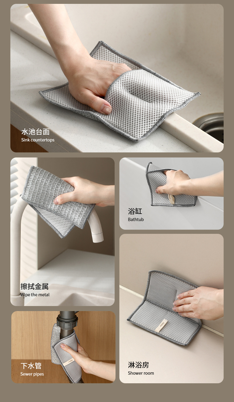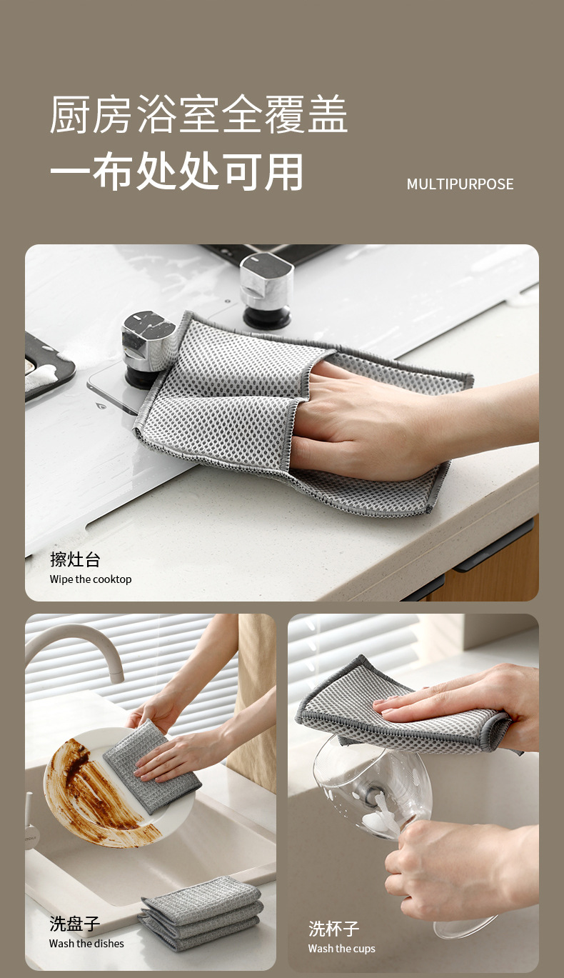 fasola double-sided dishcloth household cleaning silver silk rag brush bowl gloves easy to clean durable hard silk cleaning cloth