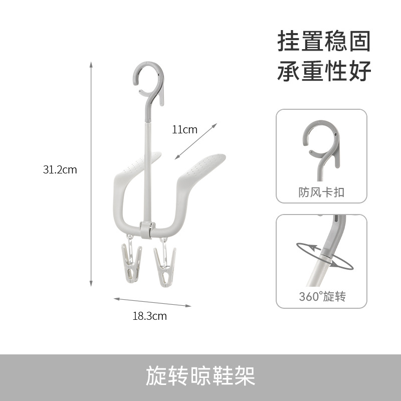 fasola household multi-functional windproof double hook balcony shoe rack rotating storage shoe rack creative shoes hanging artifact