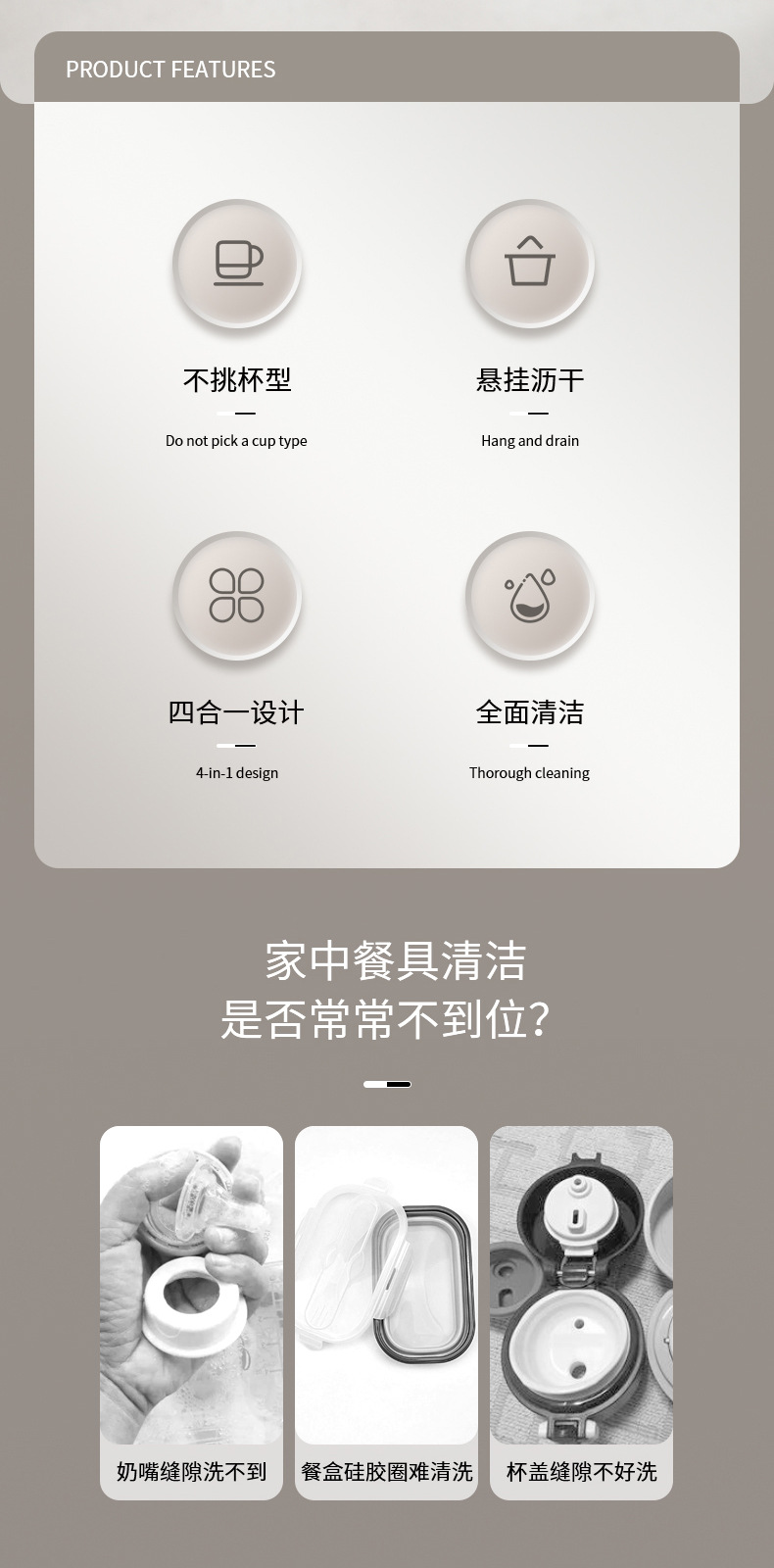 fasola four-in-one cup lid brush portable baby bottle brush warm-keeping water cup gap cleaning small brush cleaning appliance
