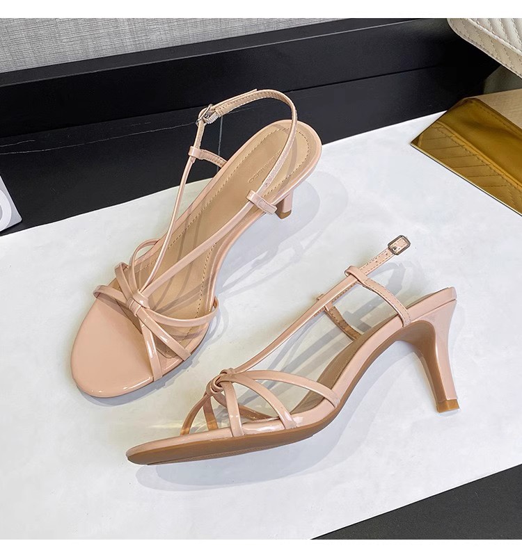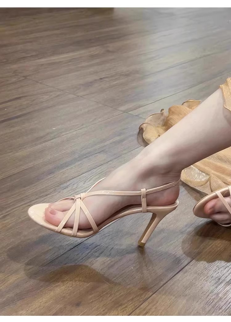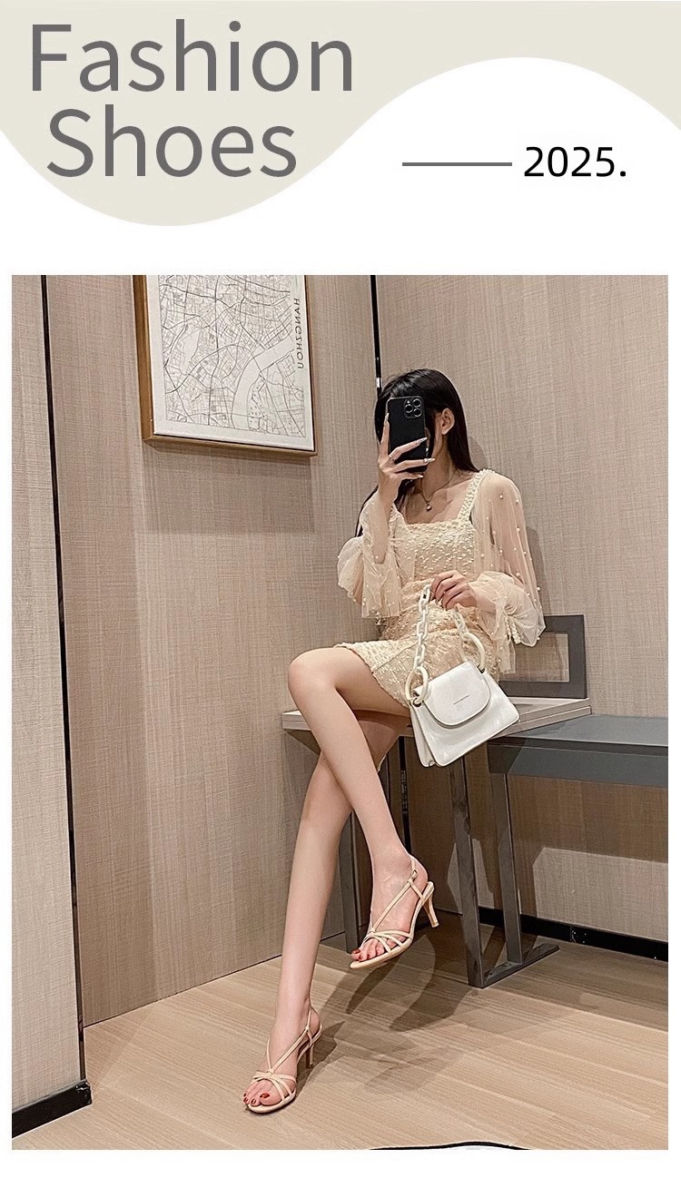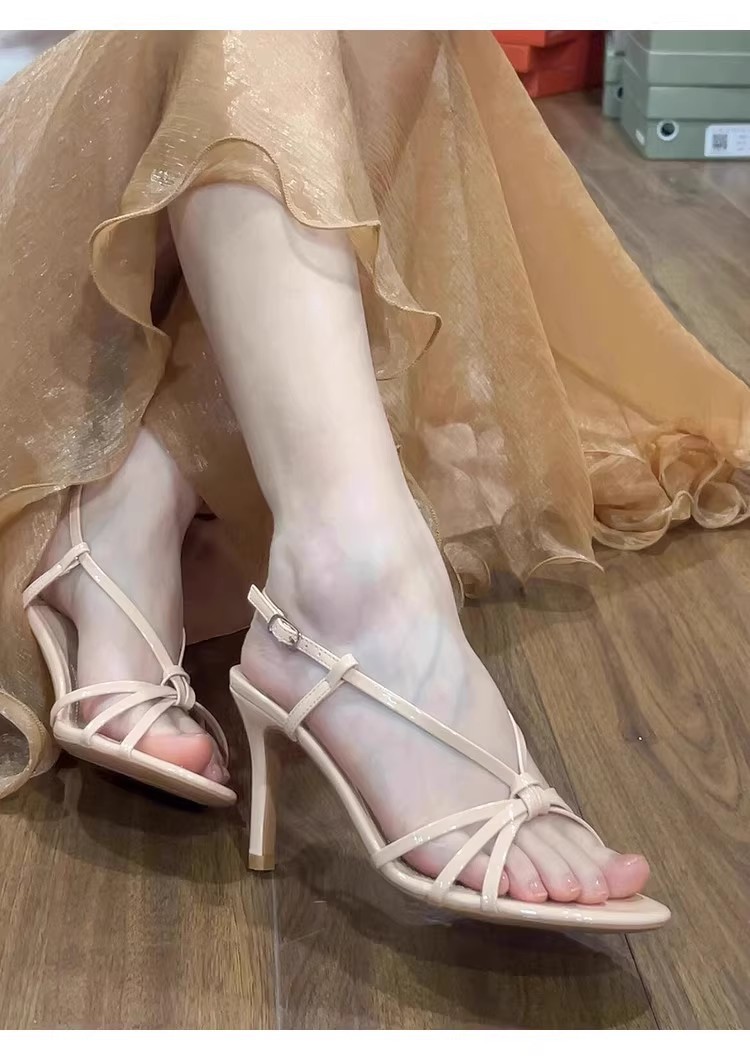 2025 summer internet hot new ankle-strap buckle classy high heels women's stiletto heel beautiful nude color stiletto sandals all-matching