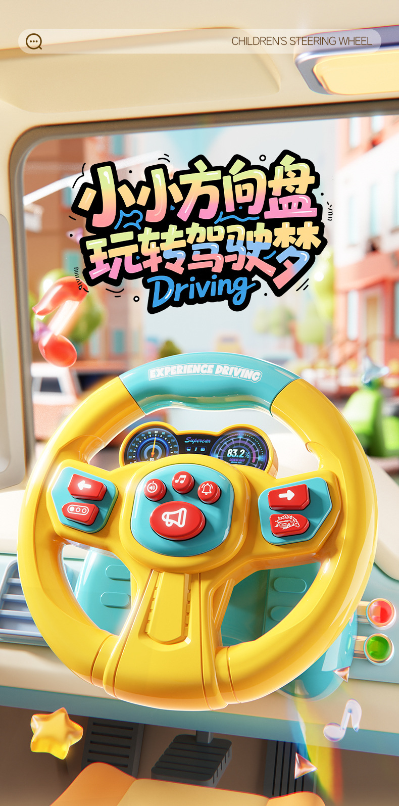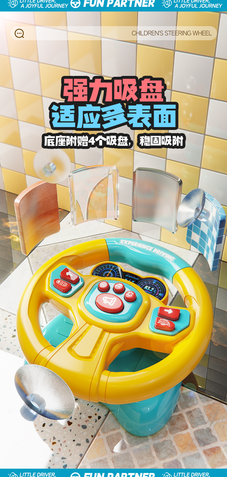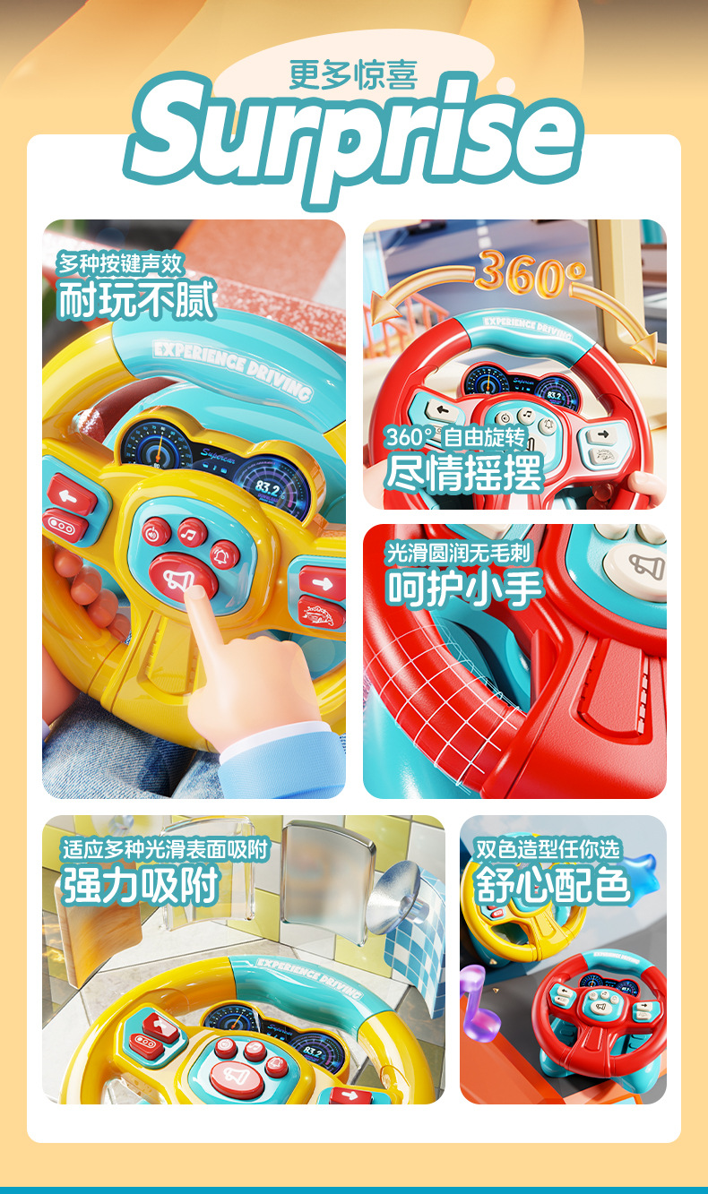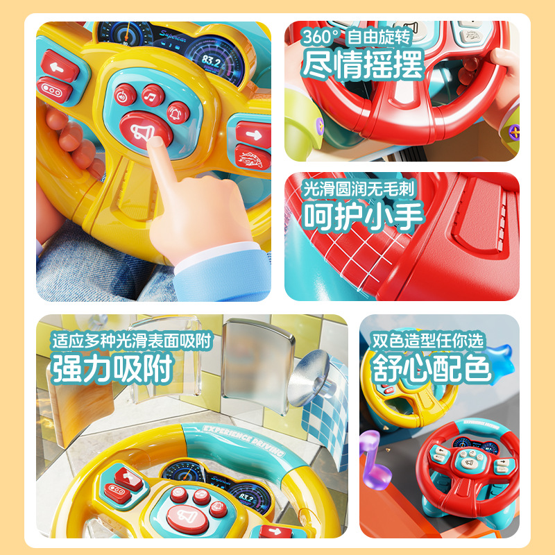 [rechargeable battery] simulation steering wheel-yellow blue (super suction + light music) chinese color box