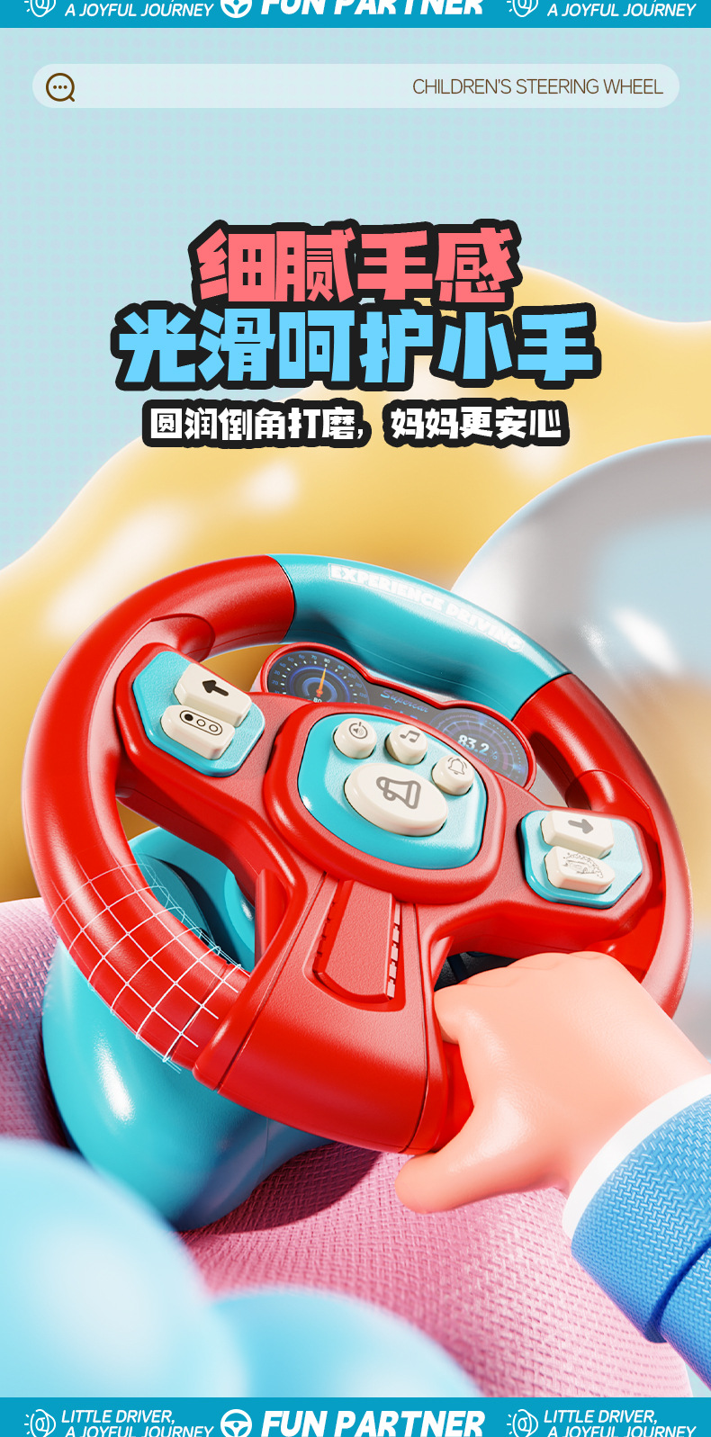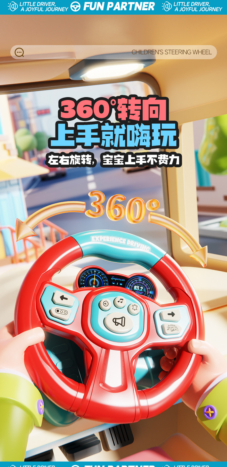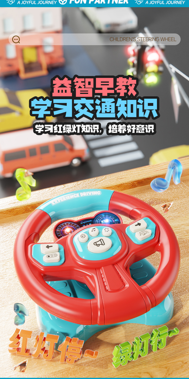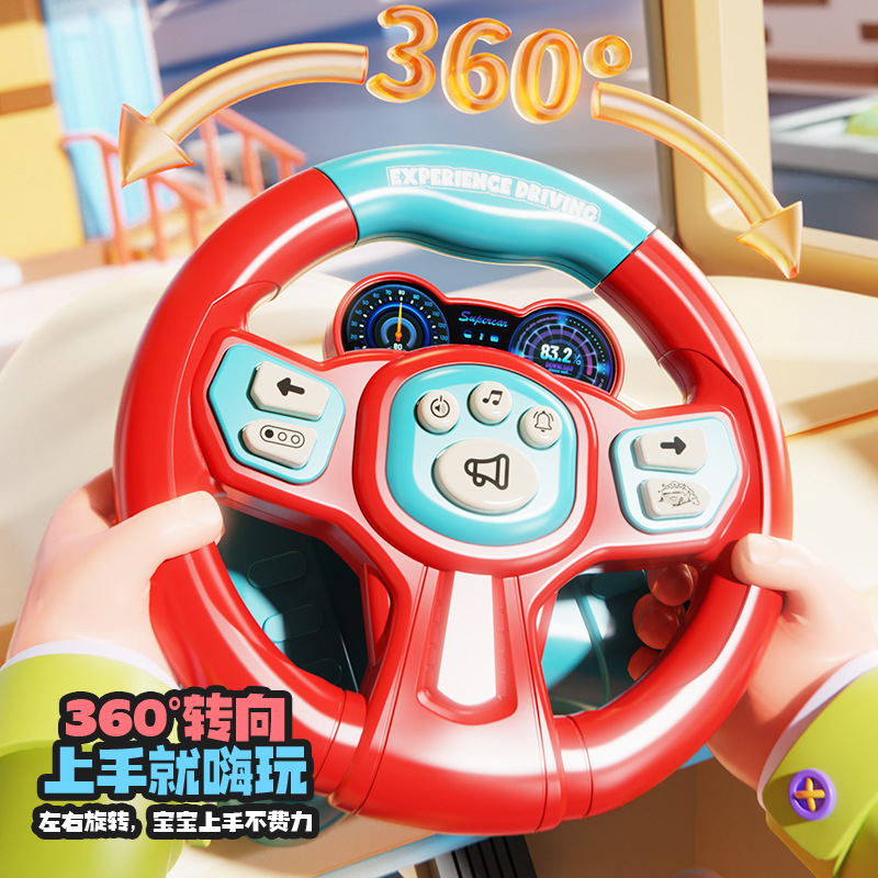 [battery] simulation steering wheel-red and blue (super suction + light music) chinese color box