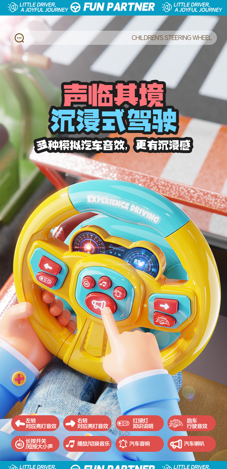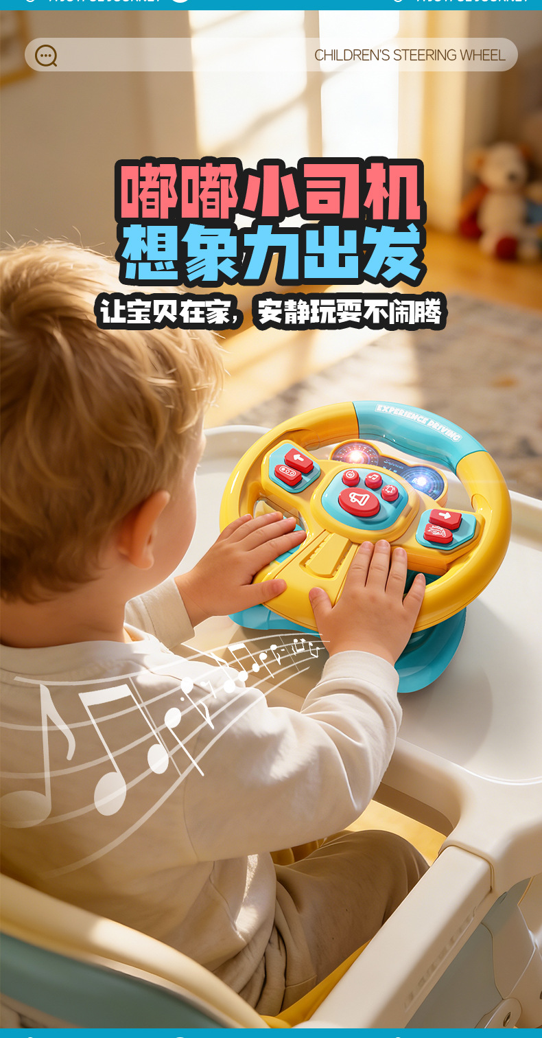 [battery] simulation steering wheel-yellow blue (super suction + light music) chinese color box