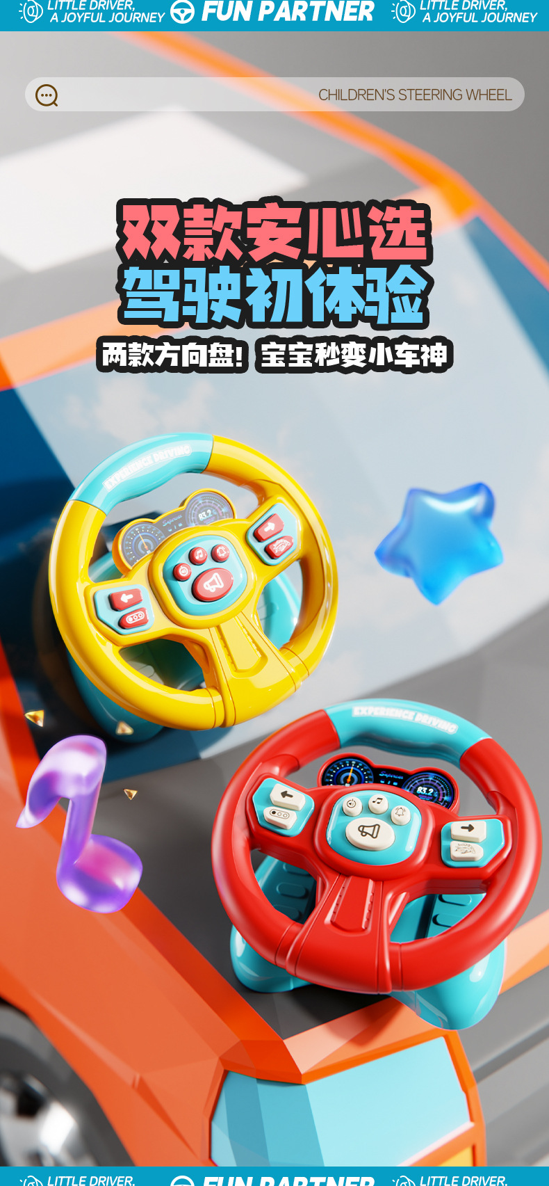 [rechargeable battery] simulation steering wheel-red and blue (super suction + light music) chinese color box
