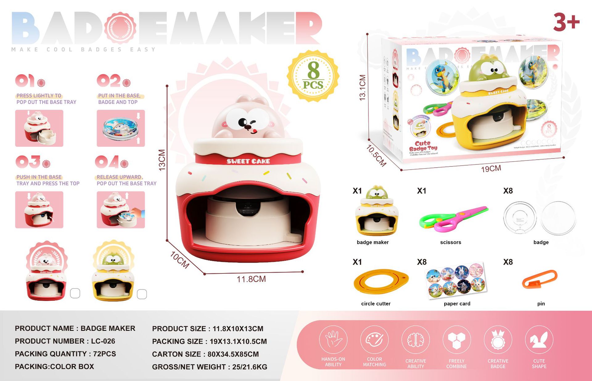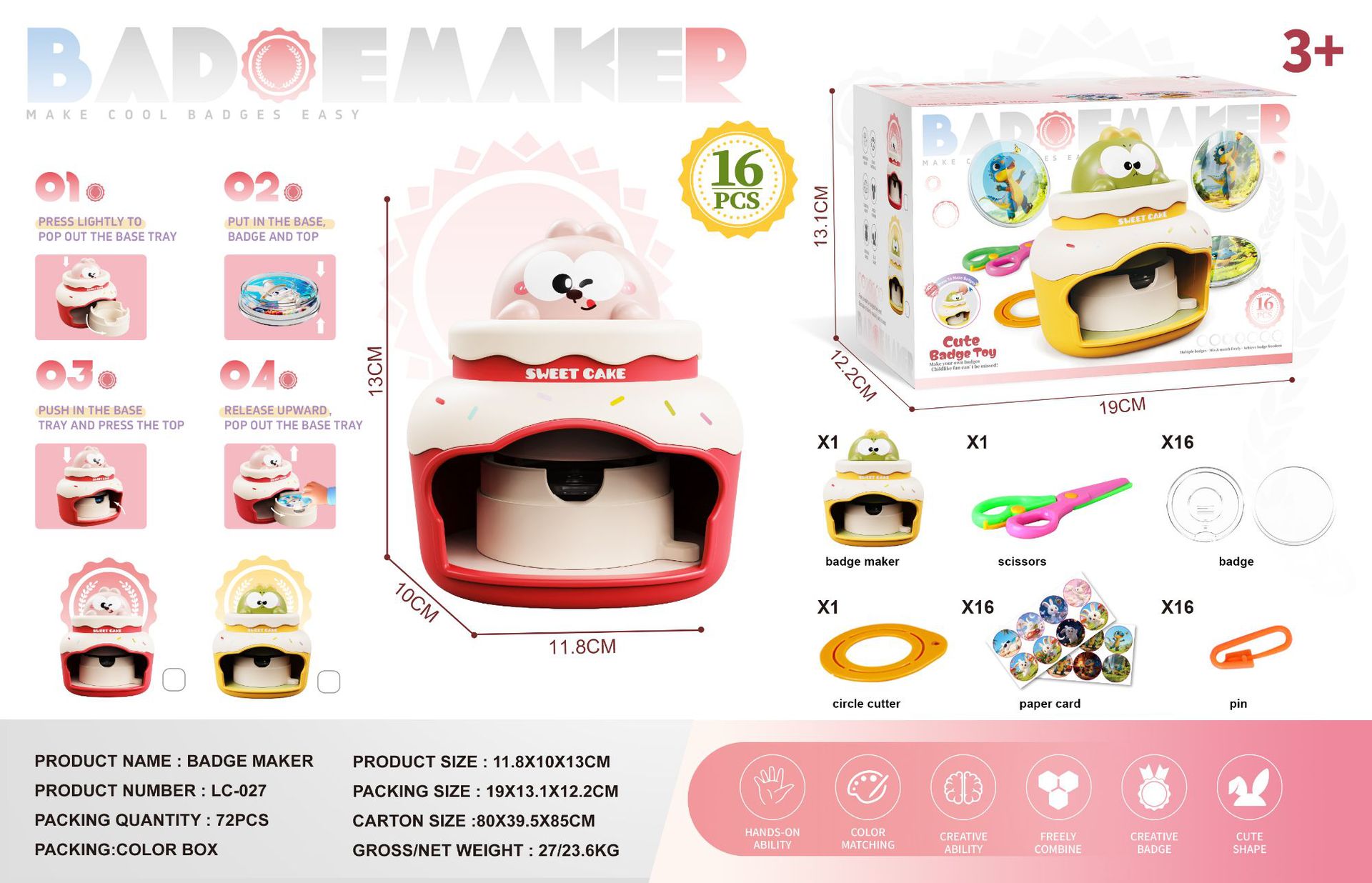 dinosaur model-bar seal machine [send 16 badges +16 patterns] english color box