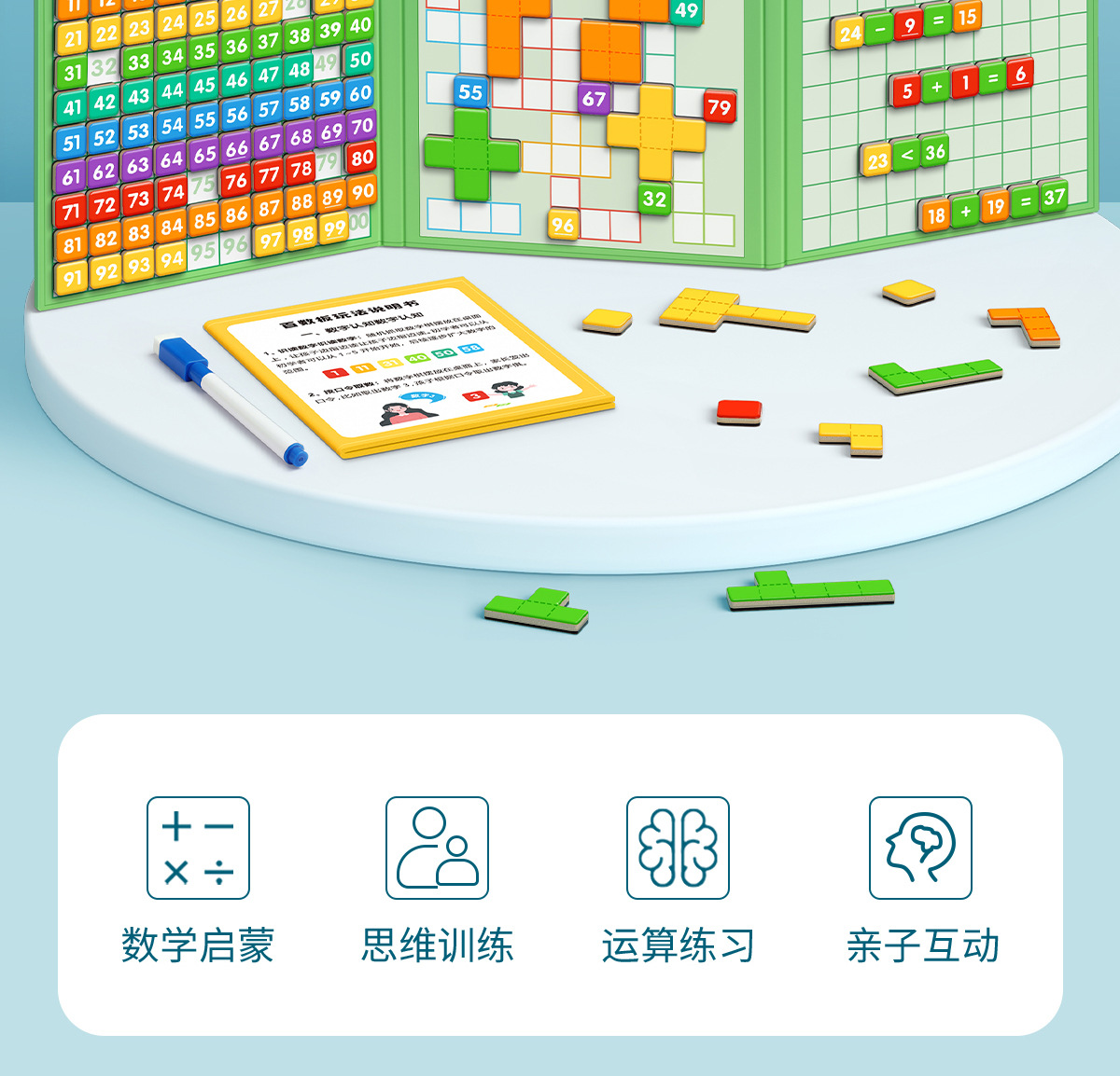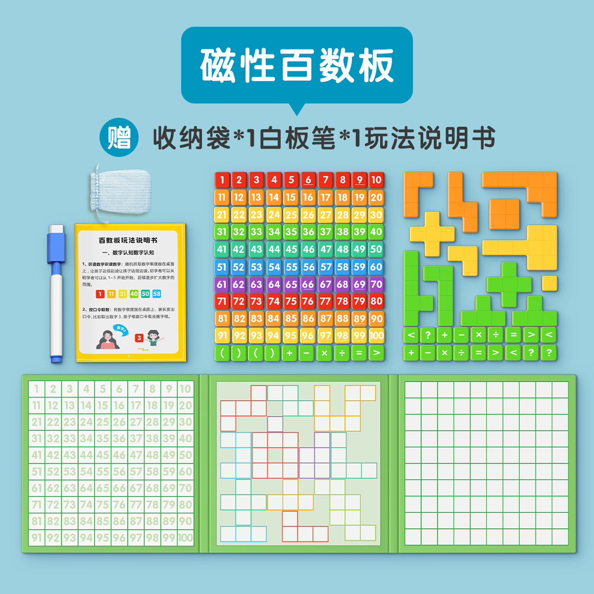 magnetic hundreds of boards (free whiteboard marker, buggy bag, play instructions)