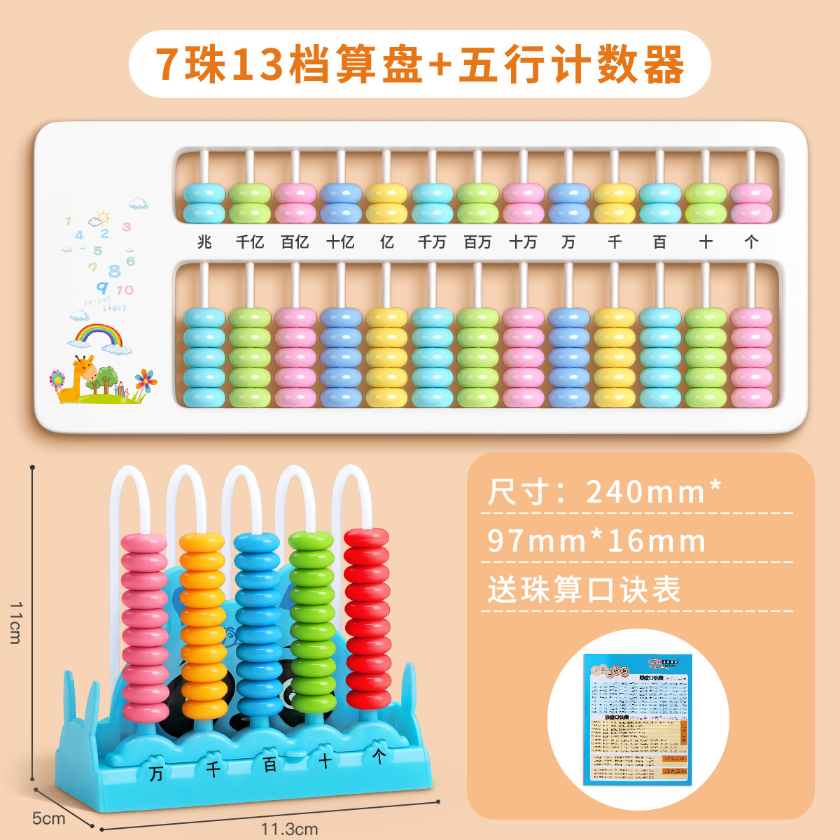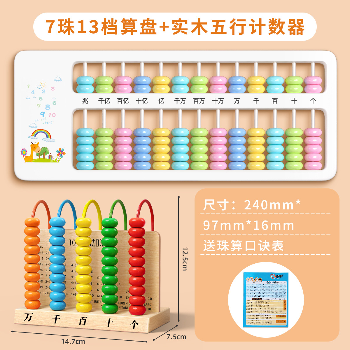 7 beads 13-speed abacus + solid wood five-speed counter