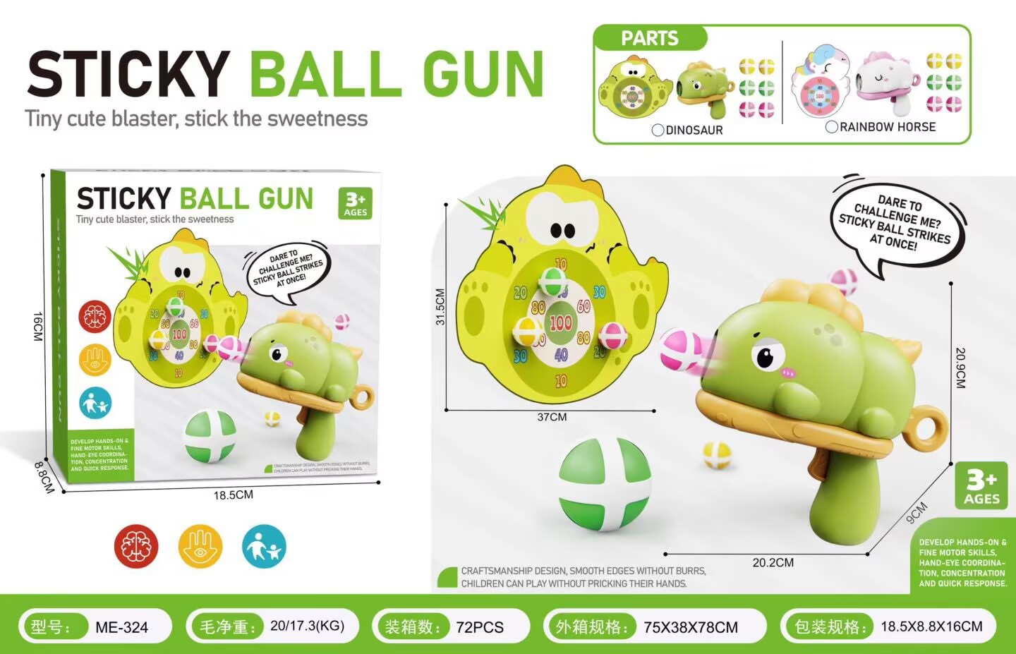 dinosaur ball gun (1 gun +6 balls +1 target) chinese e-commerce box