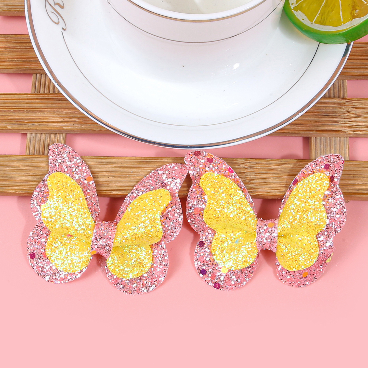 double layer onion powder butterfly barrettes