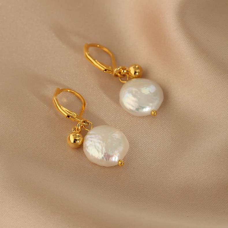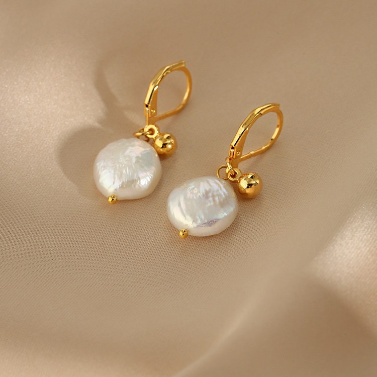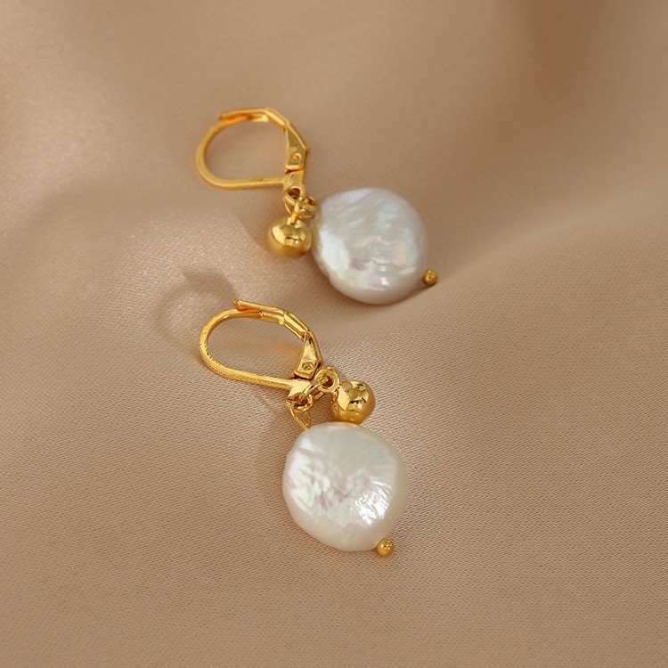 button freshwater pearl titanium steel ear clip