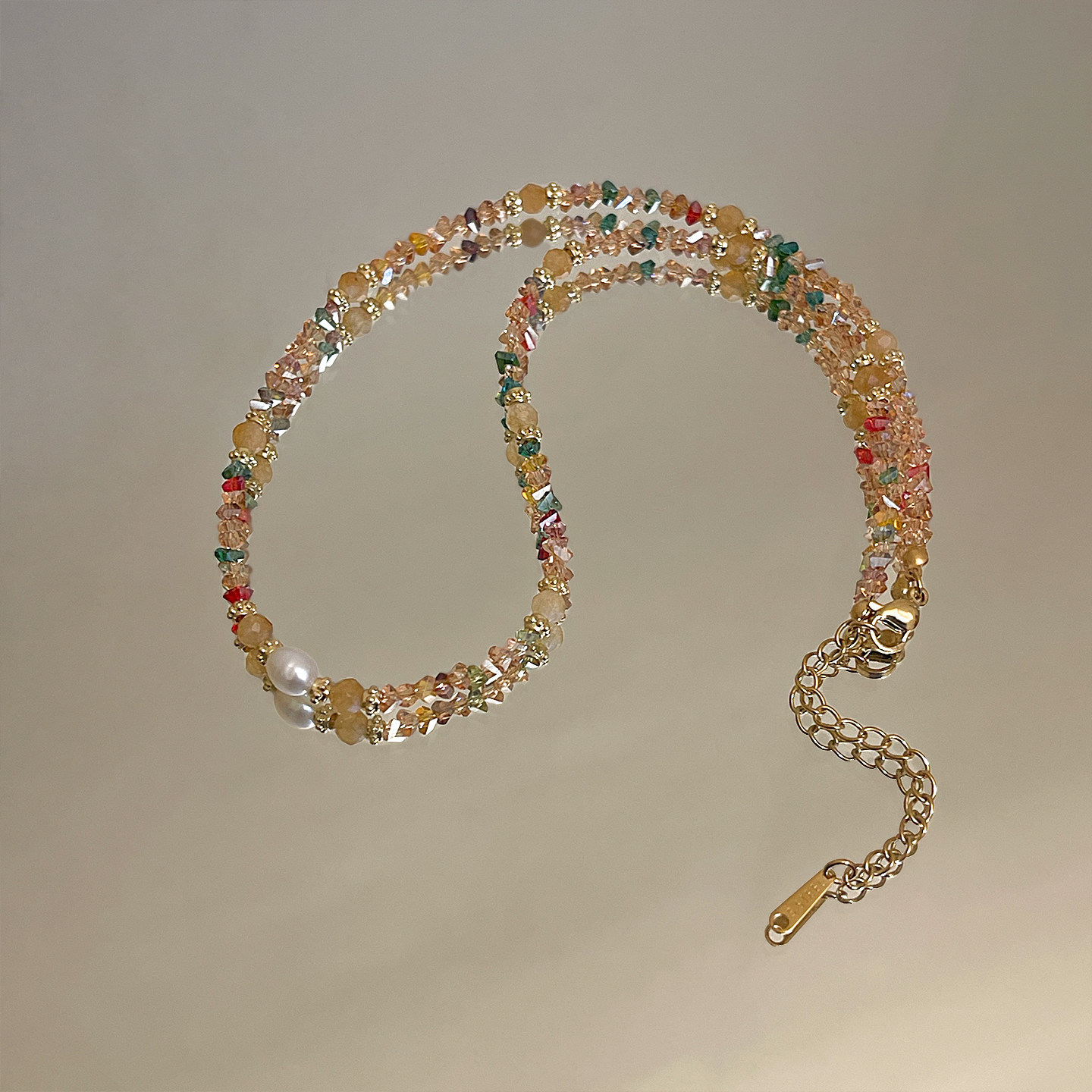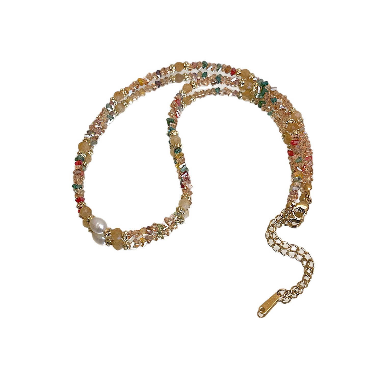 freshwater pearl mixed color broken crystal necklace